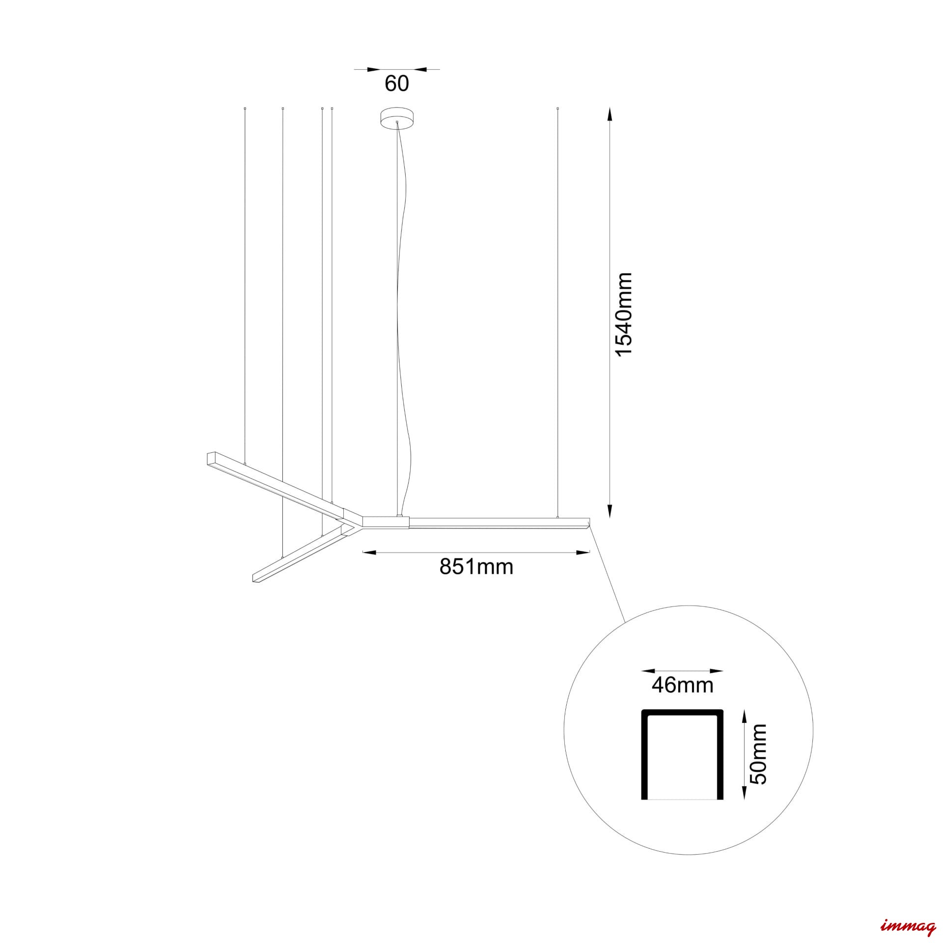 Standardowo lampy występują w 3 średnicach, czyli każdy model wyposażony jest w trzy tej samej długości ramiona.
