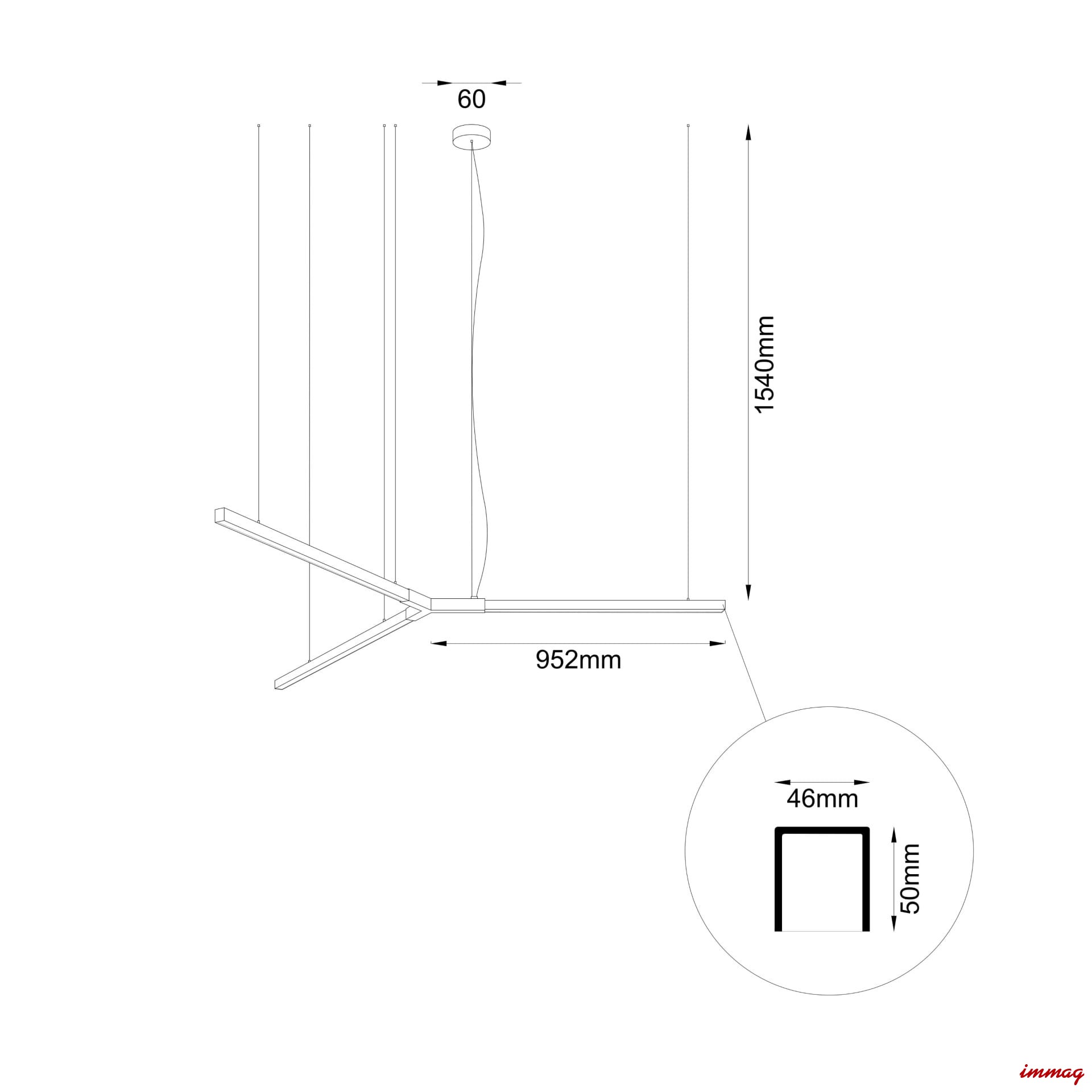 Standardowo lampy występują w 3 średnicach, czyli każdy model wyposażony jest w trzy tej samej długości ramiona.