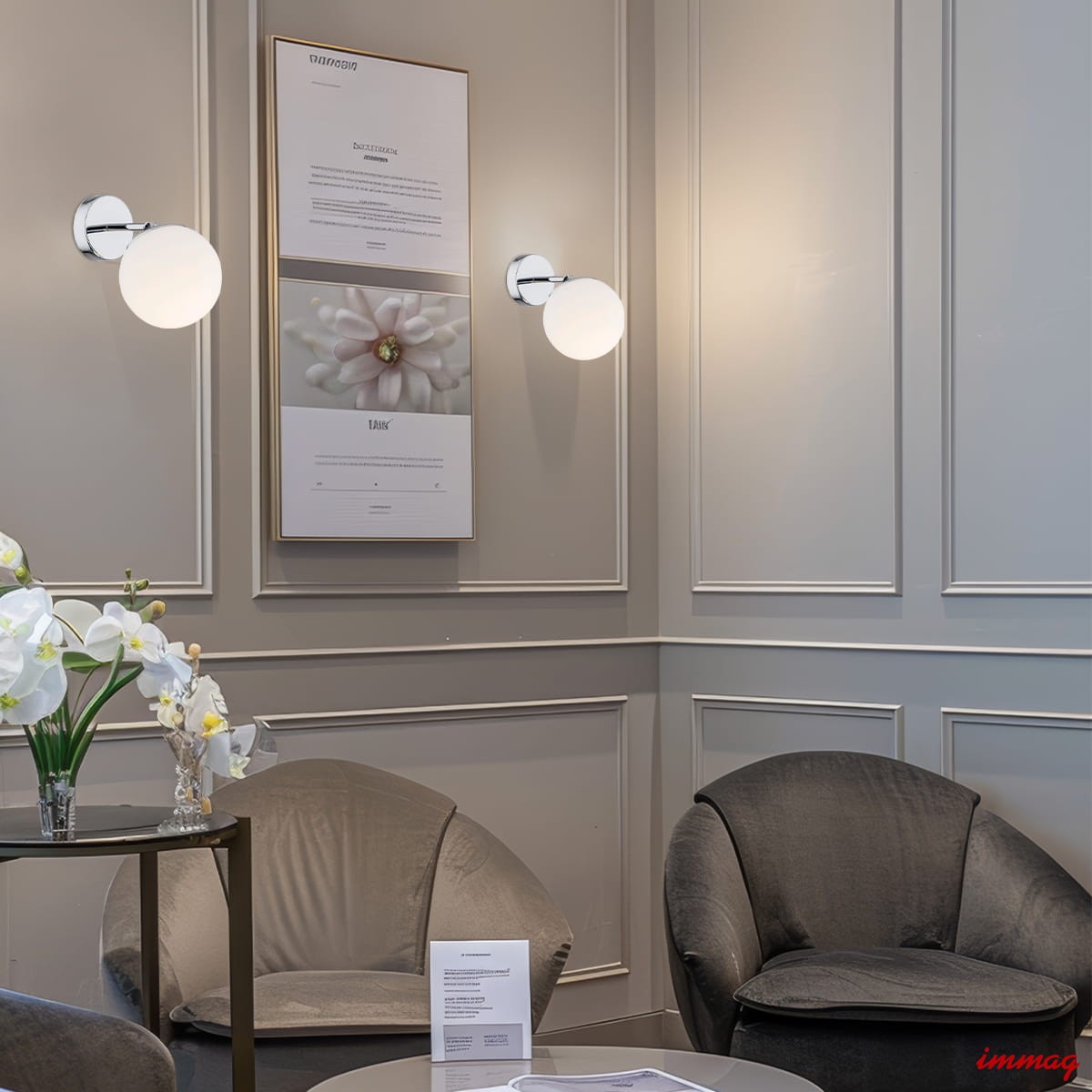 ARGON IP44 regulowany kinkiet glamour szklana kula biała z elementem chrom E27 1-płomienna SATELITE 3988