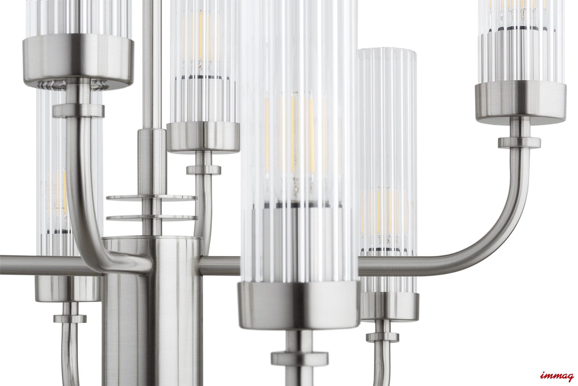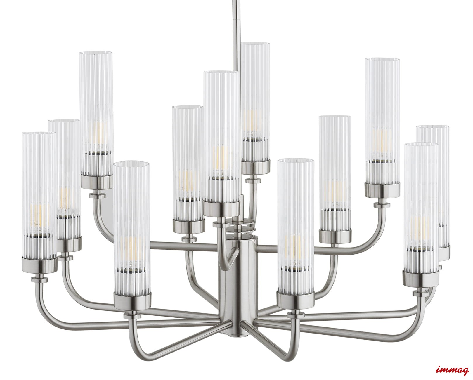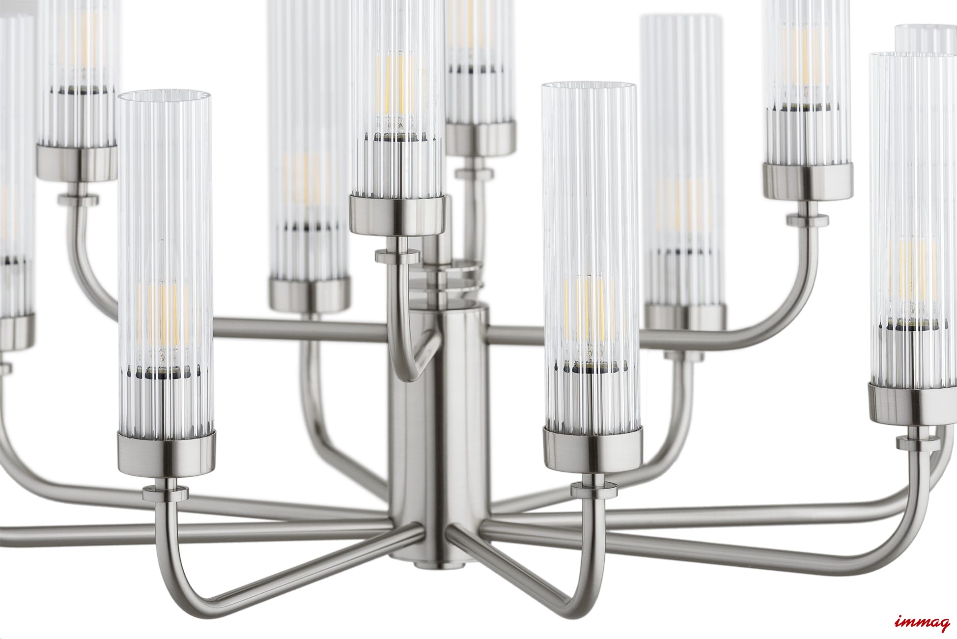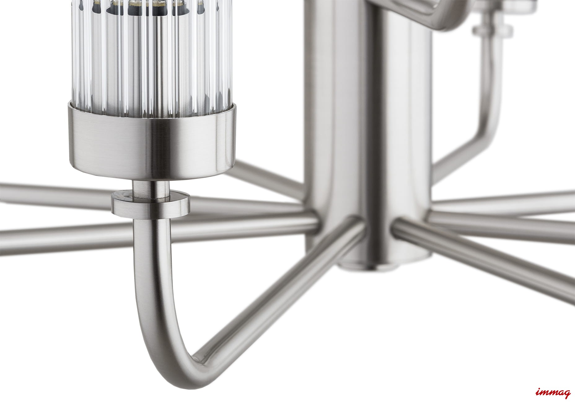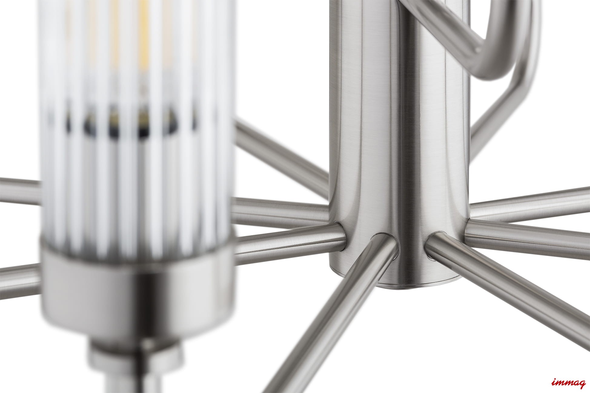 ARGON lampa wisząca do salonu żyrandol nikiel 12 płomienny ryflowane klosze PRESTON 5088
