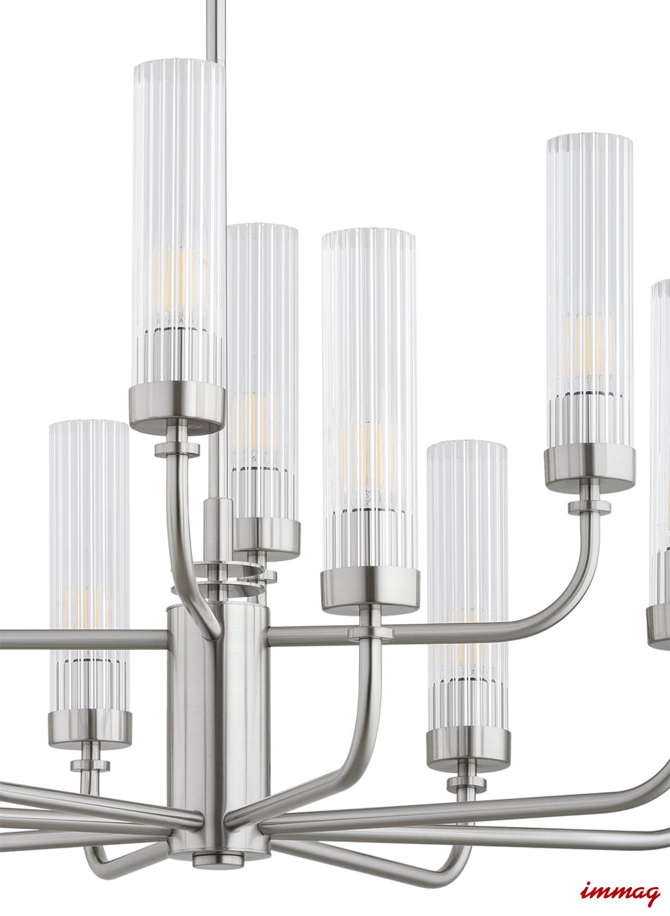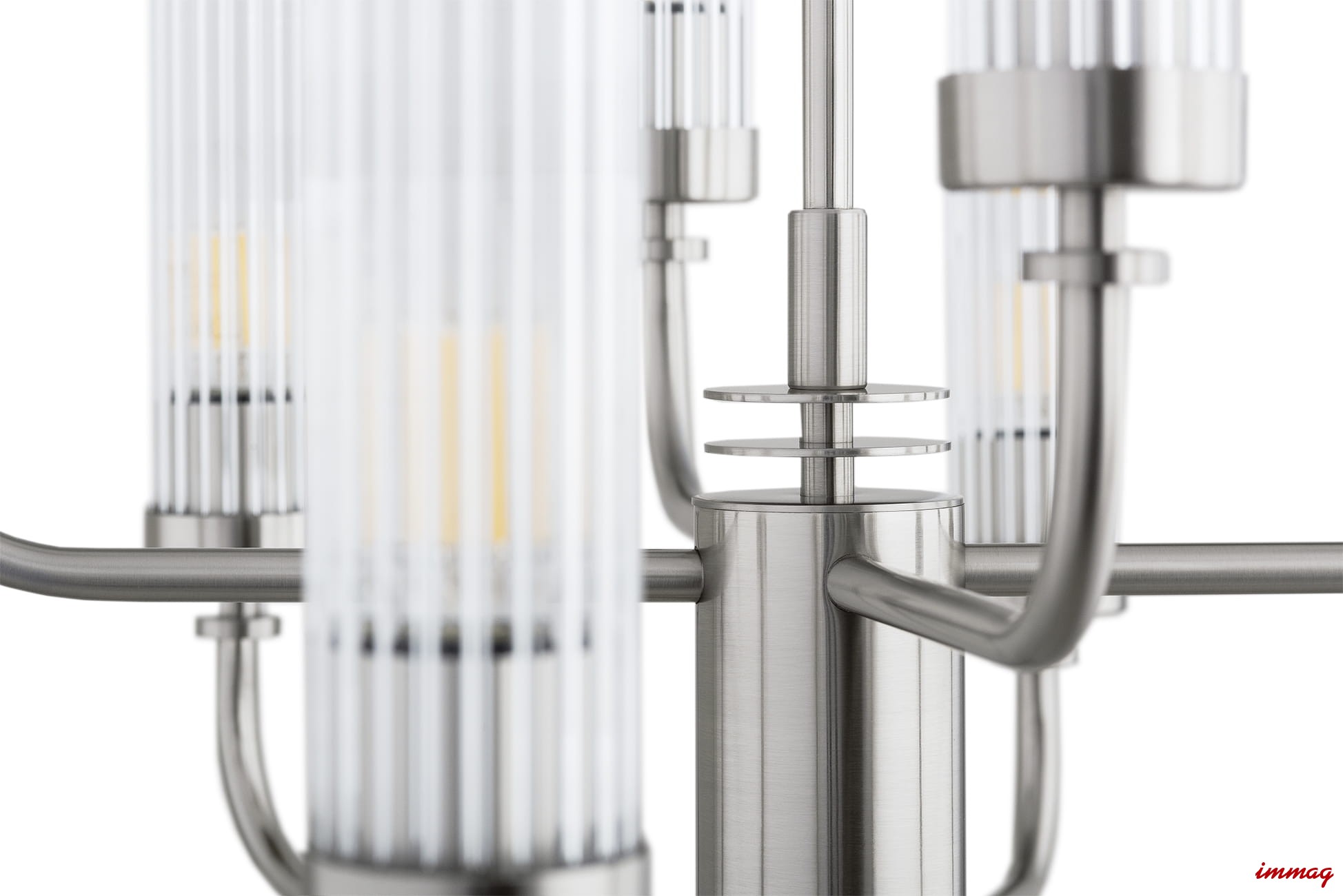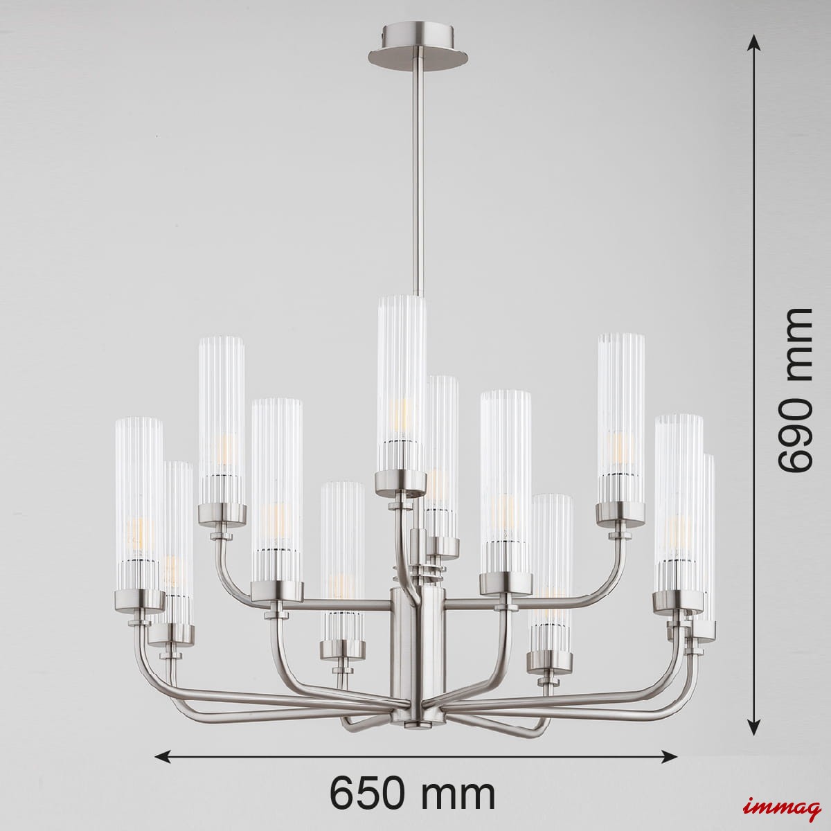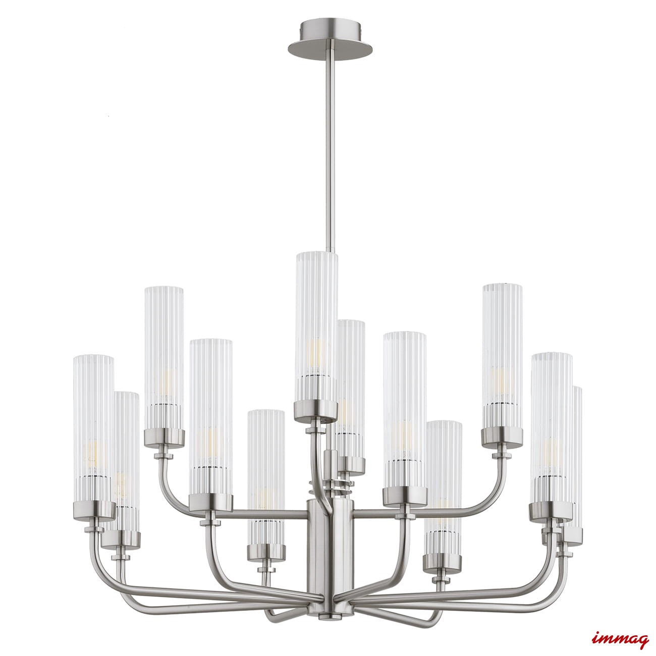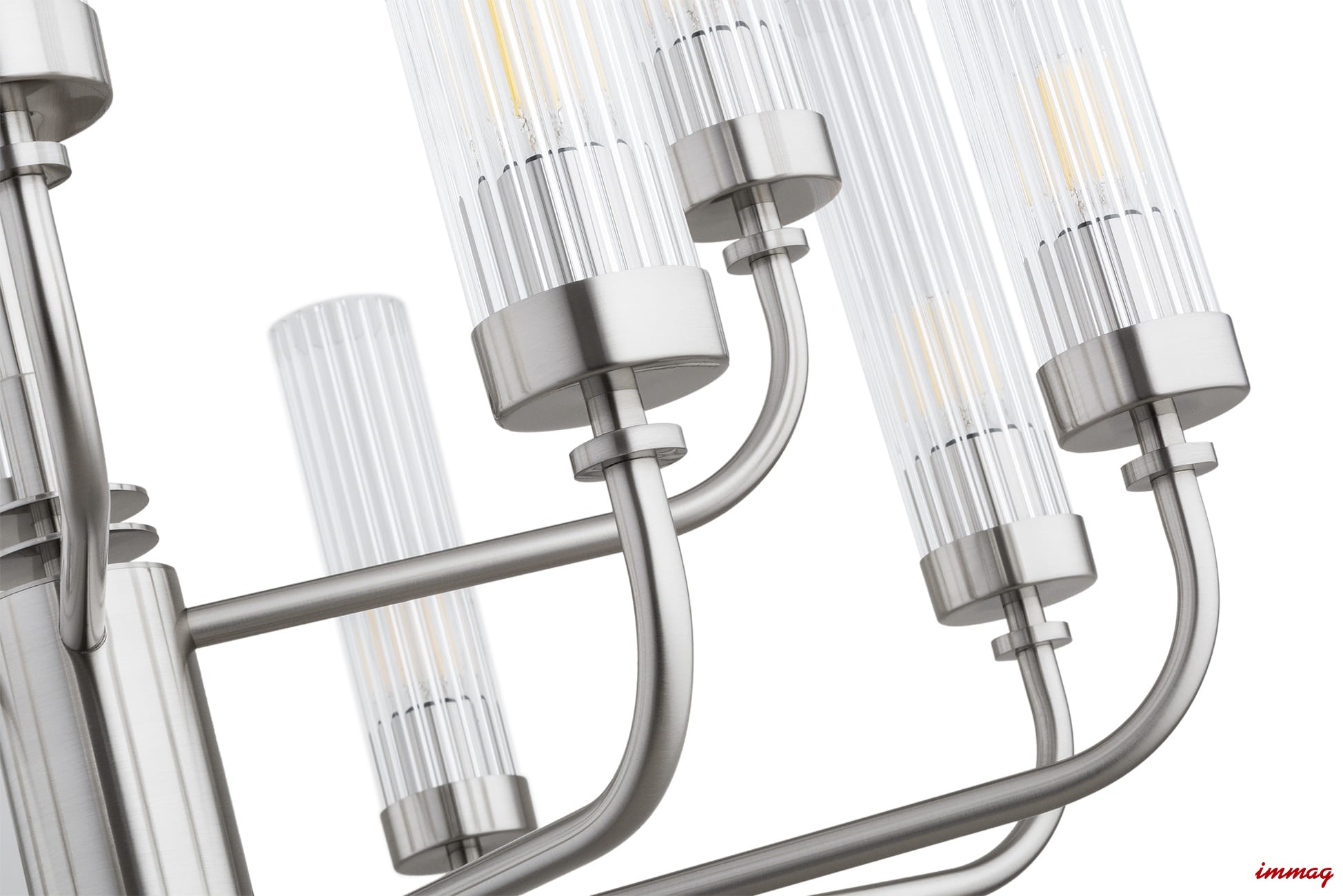 ARGON lampa wisząca do salonu żyrandol nikiel 12 płomienny ryflowane klosze PRESTON 5088
