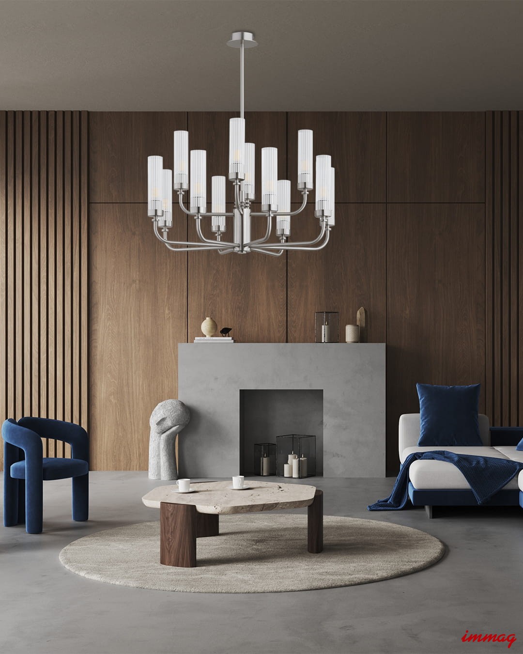 PRESTON 5088 został zaprojektowany, by robić wrażenie, ale nie przytłaczać. Dwupoziomowy układ i ryflowane szkło porządkują światło, tworząc scenę elegancji. Ciemny nikiel wprowadza współczesny, luksusowy akcent, który nie wychodzi z mody. Dwanaście źródeł E14 gwarantuje funkcjonalność od codzienności po uroczyste okazje. To inwestycja w ponadczasowy styl i trwałość. Made in Poland — od projektu po wykonanie. Szukasz niebanalnego żyrandola w ciemnej wersji? Zależy Tobie na klasie, stylu, elegancji i jakości? Metalowa konstrukcja ma kolor ciemnego niklu co już w sobie jest efektowne i świeże. Masywny żyrandol posiada, aż 12 ramion, na każdym z nich miejsce na żarówkę E14 zakrytą pięknym ryflowanym szklanym kloszem – to elegancki żyrandol, który przypomina najpiękniejsze klasyczne świecznik, ale w nowej bardziej efektownej, nowoczesnej formie dopasowanej do współczesnych wnętrz. Ramiona są ulokowane na różnych wysokościach, mamy więc piętrowy potężny żyrandol. Produkt wyprodukowany w Polsce. Taki jest właśnie mosiężny żyrandol PRESTON 5088 od Argon.
