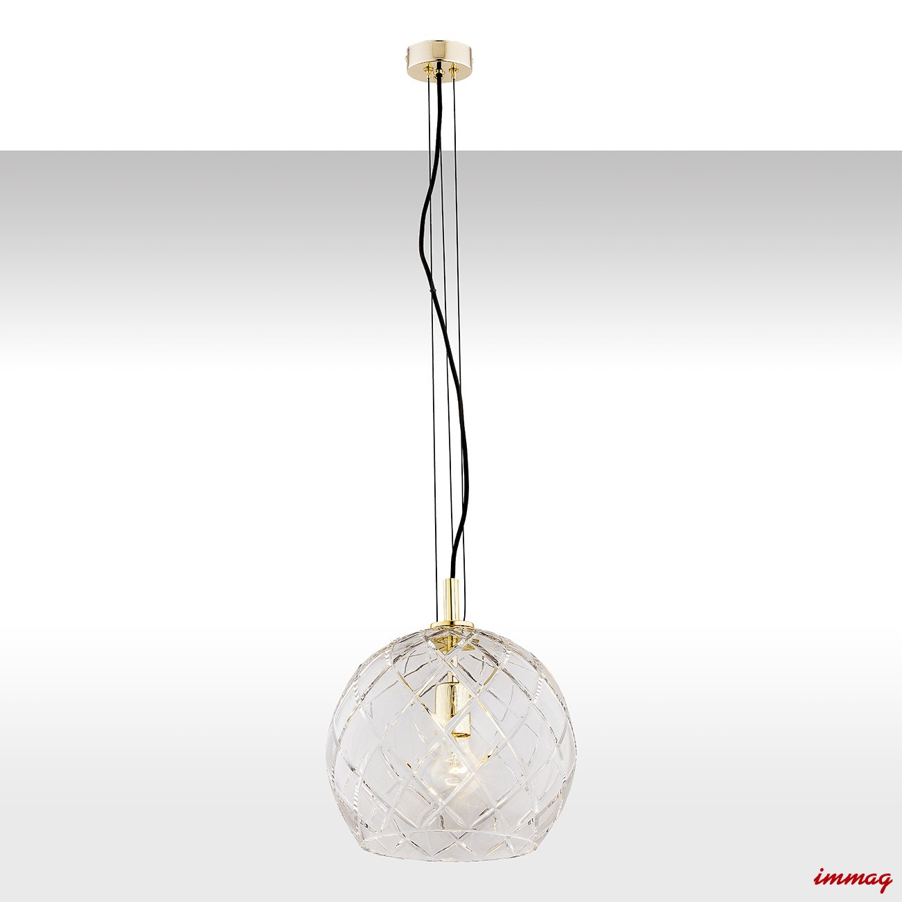 ARGON lampa wisząca większa szklana kula kryształowa mosiądzowane detale OVIEDO 4201