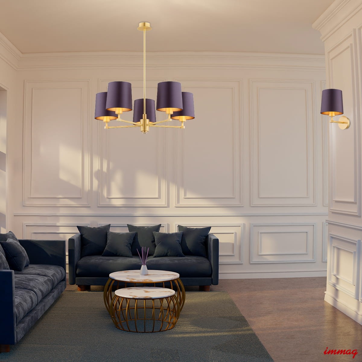 Kolor: fioletowy-śliwkowy (złoty środek), mosiądz szczotkowany