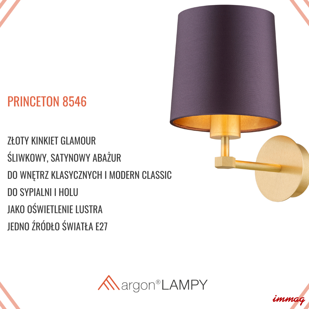 ARGON mosiężny kinkiet glamour abażur śliwkowy PRINCETON 8546