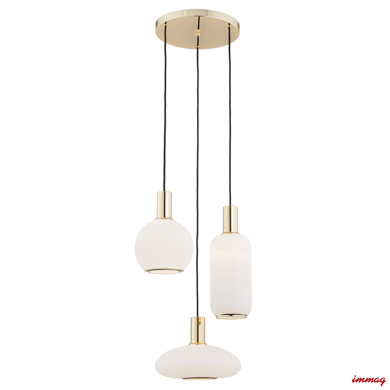 ARGON szklana lampa wisząca 3 klosze trzy różne kształty mleczne szkło złote dodatki SAGUNTO 1489