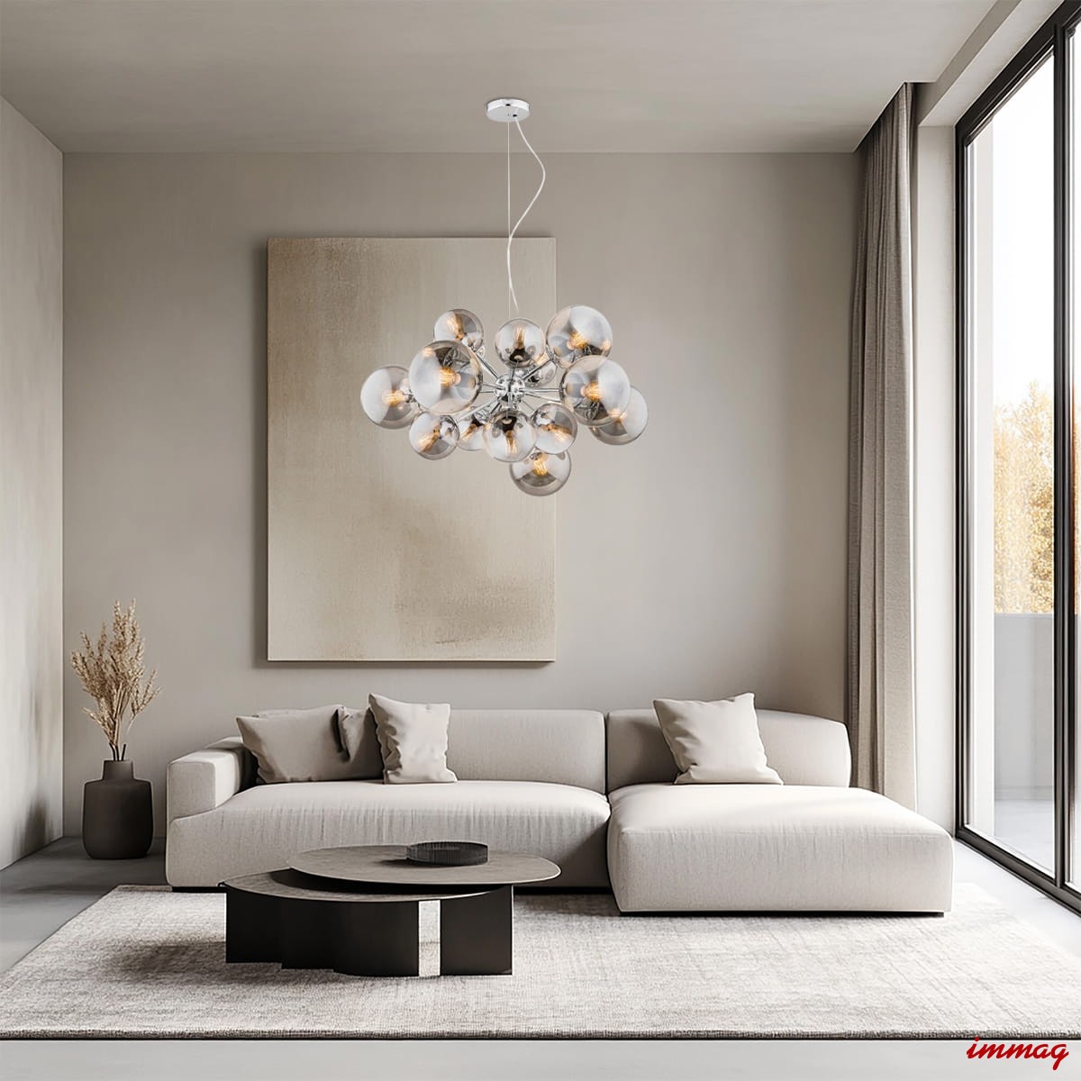 ARGON żyrandol glamour szklane klosz kule grafit z elementami chrom E27 15-płomienny SATELITE 5022