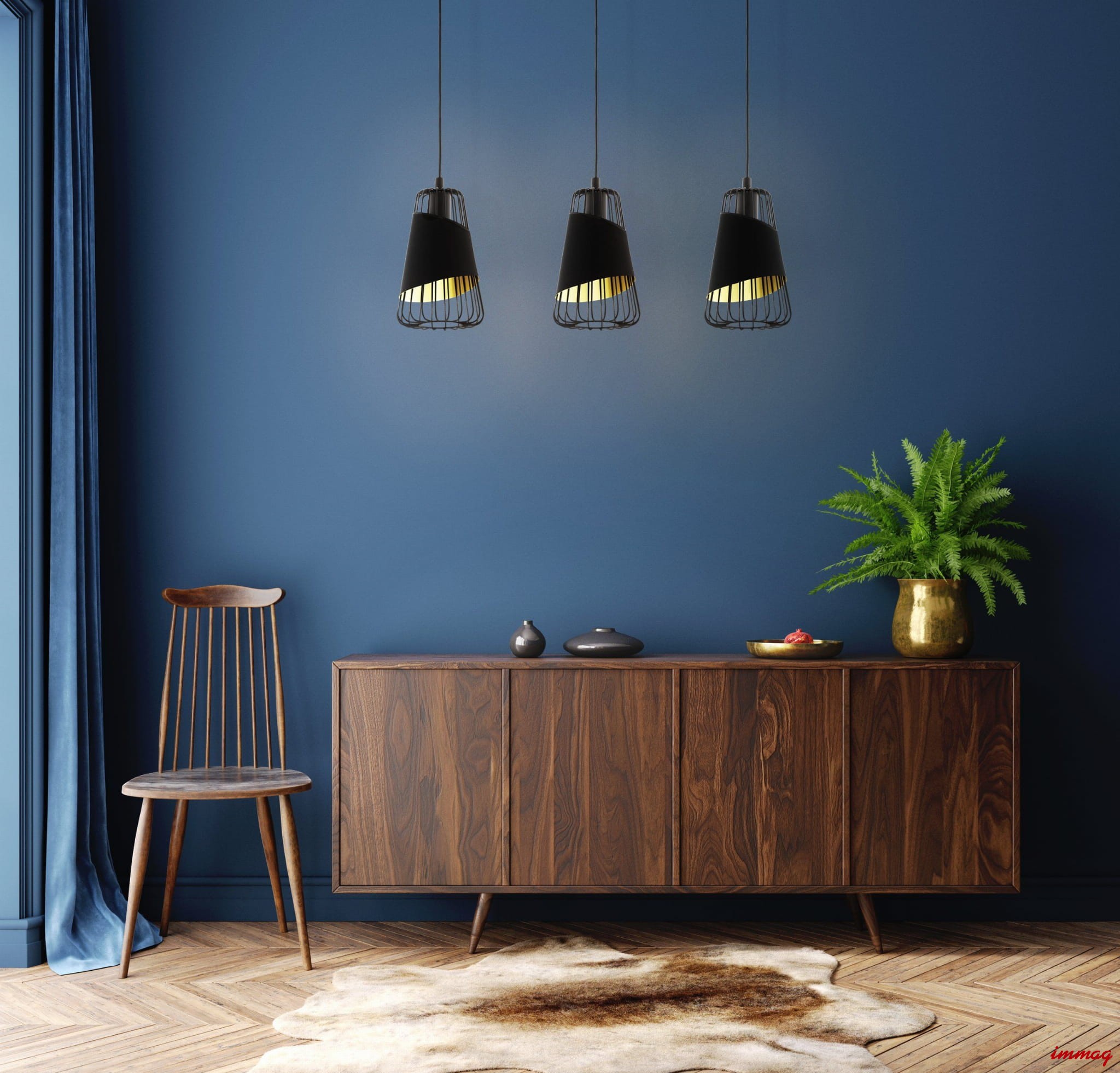 Austell to kolekcja lamp wiszących, o interesującej formie i kolorze. Podstawę lampy stanowi ażurowy stelaż, na który nałożono asymetryczny kawałek tkaniny. Abażur ten wykonano z połączenia dwóch kolorów, dzięki czemu po włączeniu zasilania wnętrze wypełnia się ciepłym, przyjemnym dla oczu światłem.