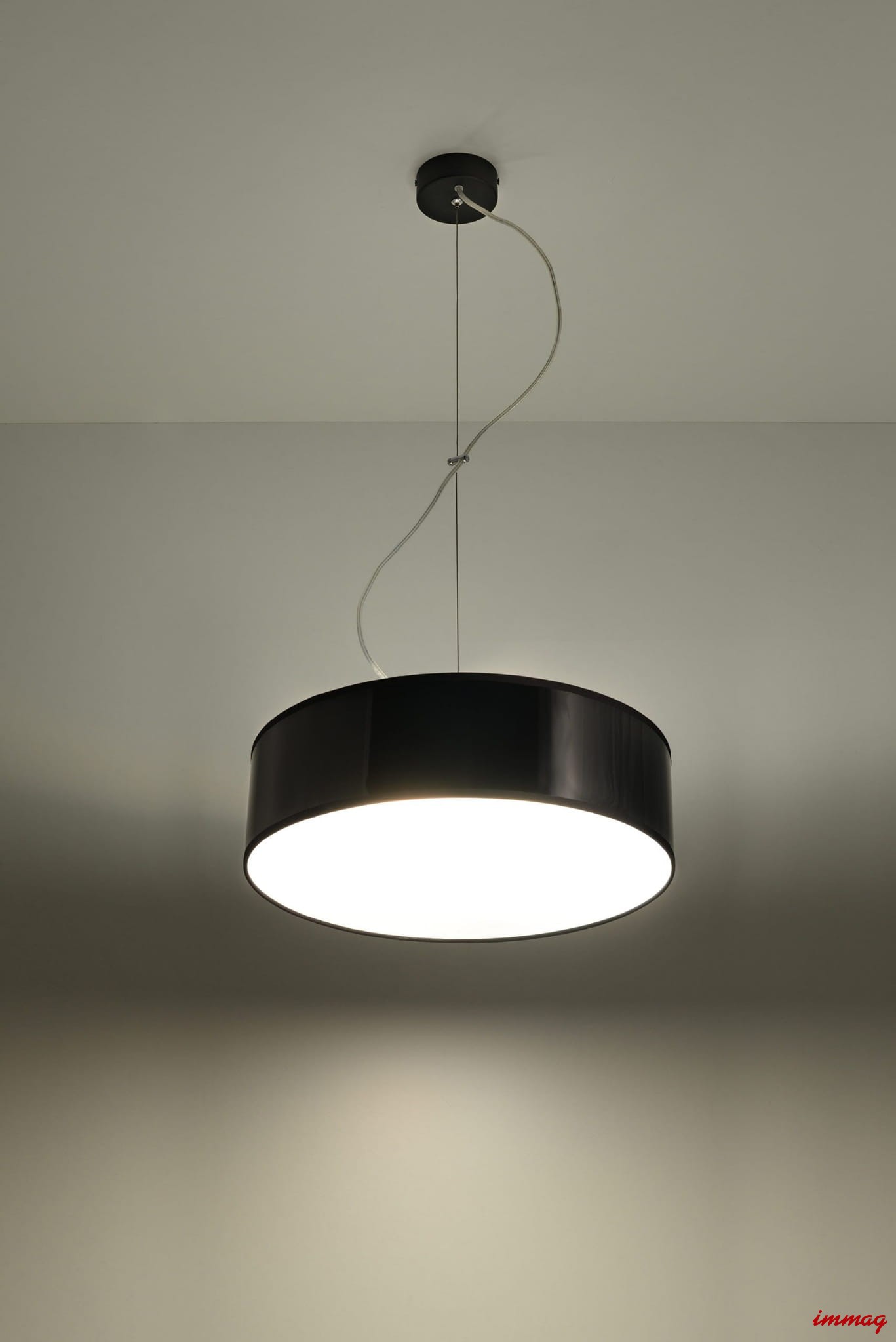 Nowoczesna, prosta linia lamp ARENA to propozycja firmy SOLLUX lighting. Najważniejszą częścią lampy jest efektowny abażur wykonany z PCV w kolorze białym, czarnym lub szarym, zamocowany bezpośrednio na suficie lub zwieszony na delikatnej lince, wzdłuż której poprowadzono przewód zasilający. Ważnym elementem lampy jest przesłona, dzięki której nie widzimy źródeł światła, a dodatkowo idealnie rozprasza je po całej powierzchni.