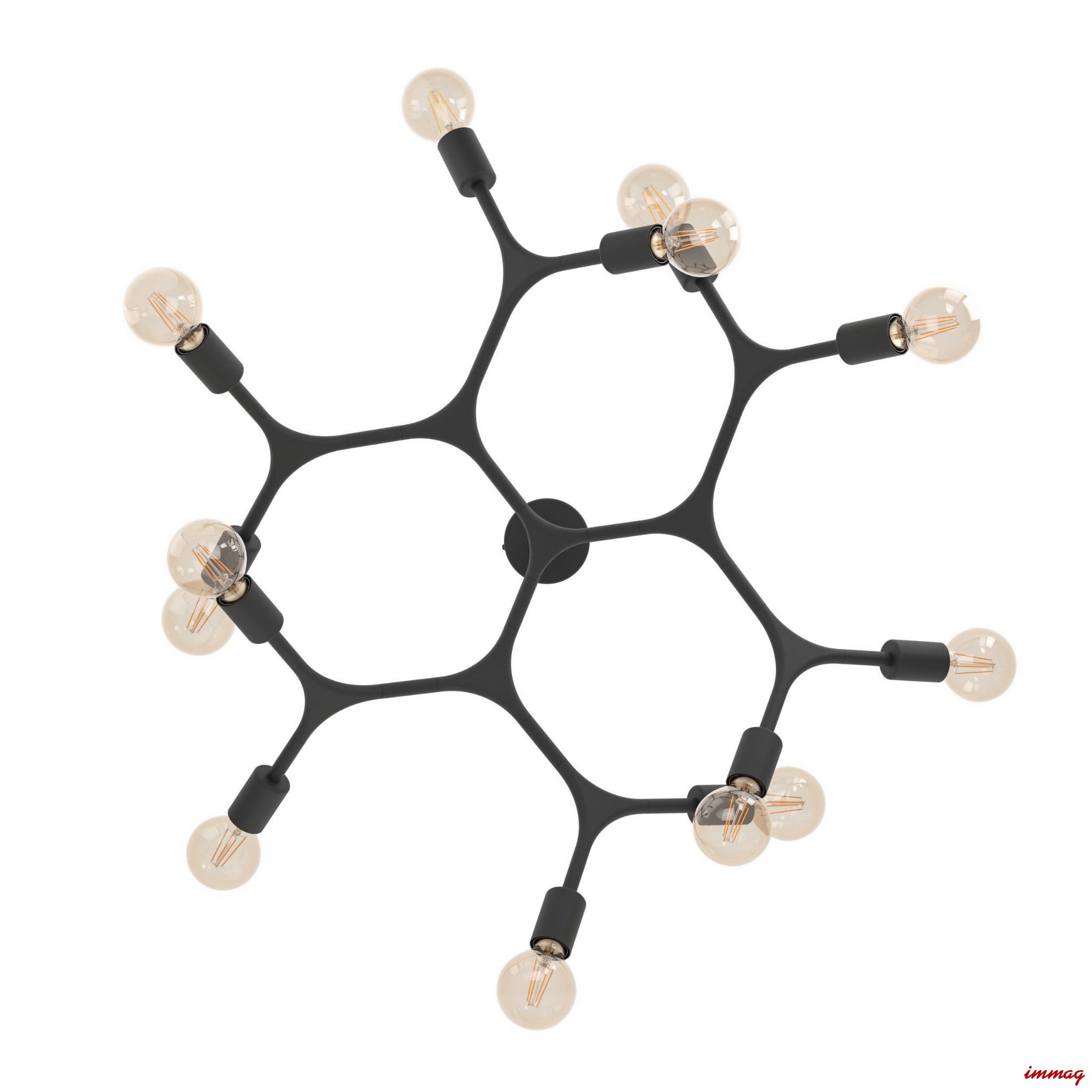 Bocadella - nowoczesna seria lamp sufitowych i wiszących, przypominająca kształtem wiązania chemiczne. Całość wykonano z ciekawie uformowanej czarnej stali zakończonej oprawką z tradycyjnym gwintem E27. Ten rodzaj oświetlenia pozwala wyeksponować bardzo efektowne, dekoracyjne źródła światła, których rodzaj, kształt i barwę dobiera się według własnego uznania.