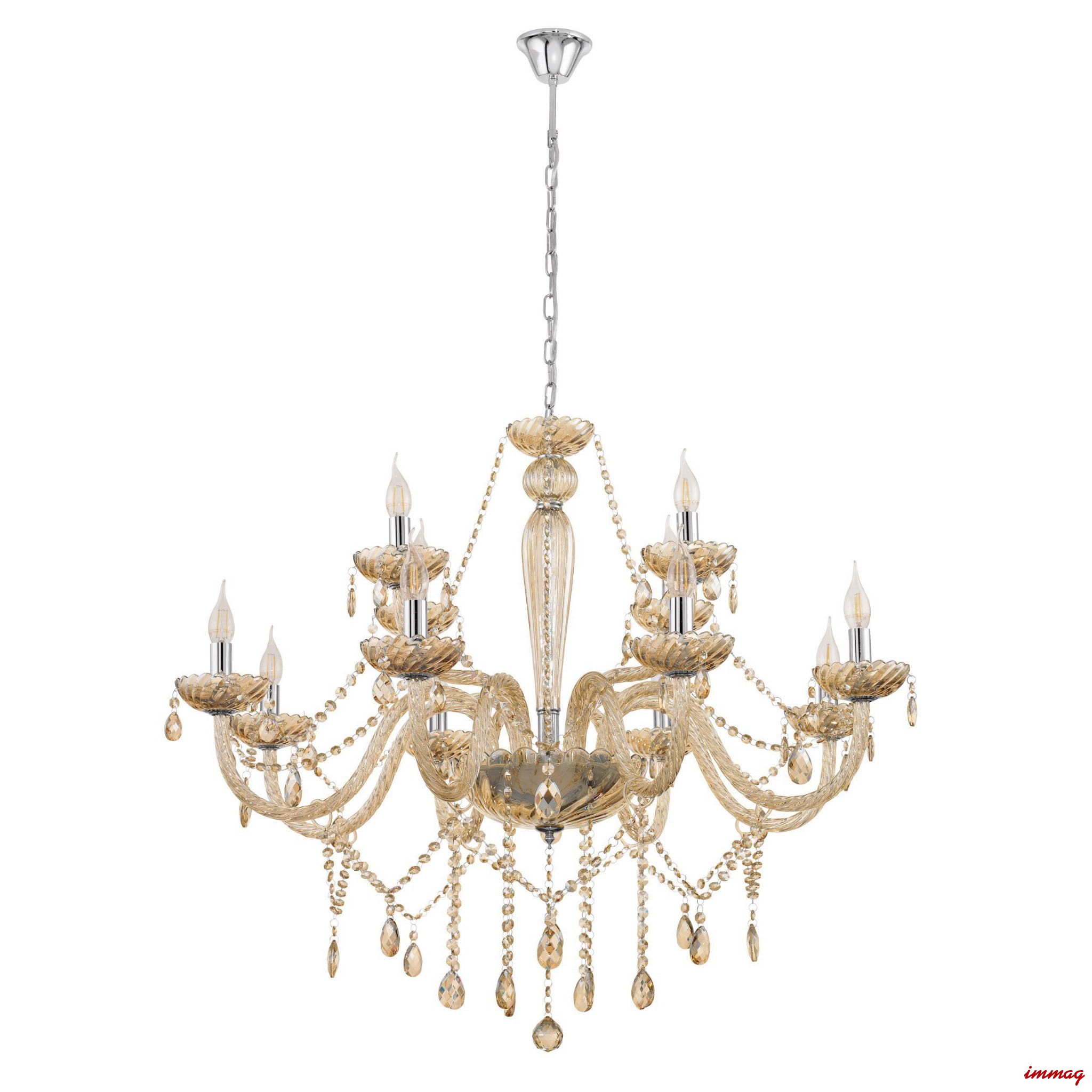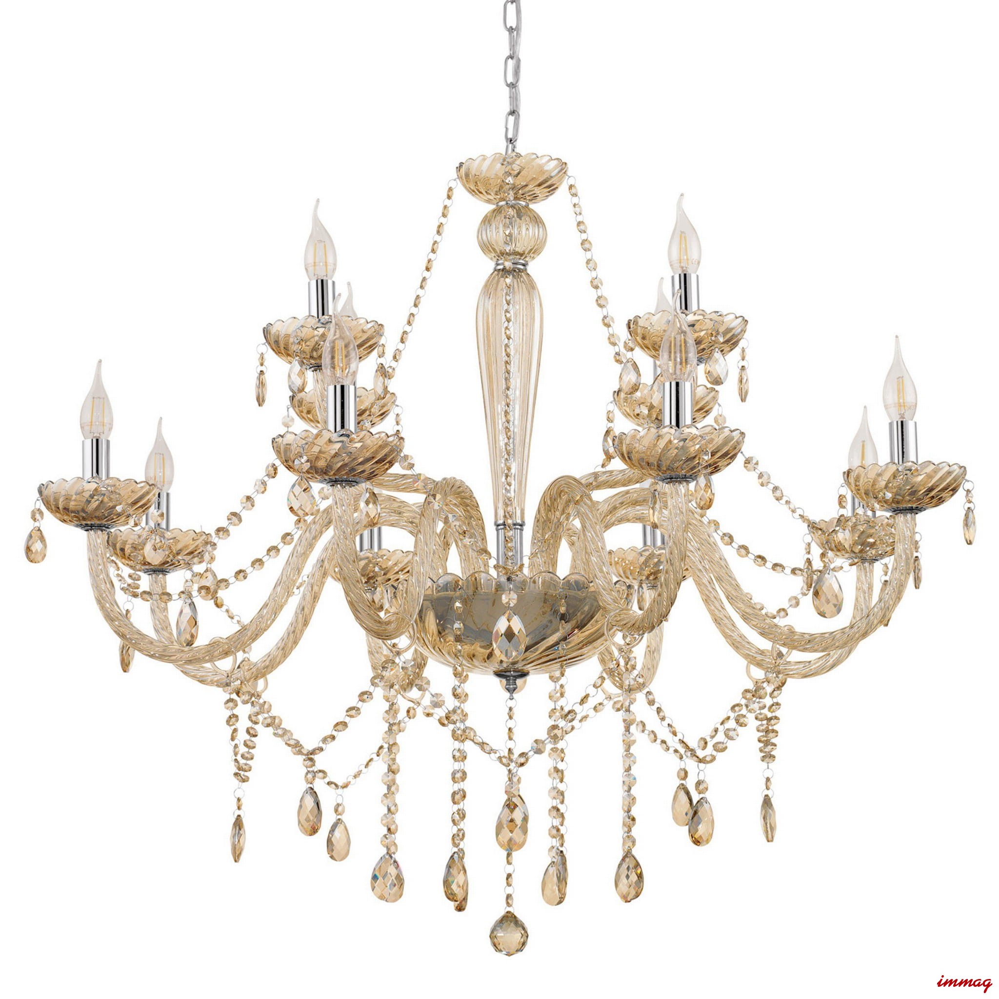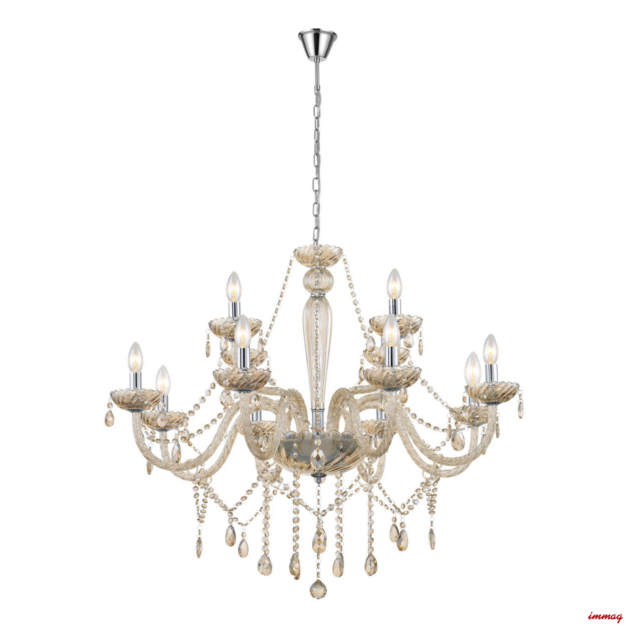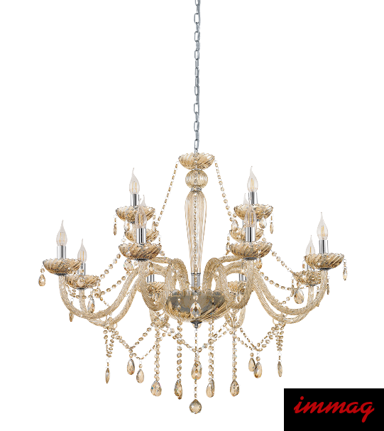Basilano i Basilano 1 to kolekcja bogato zdobionych żyrandoli, wykonanych z połączenia szykownego chromu z pięknie połyskującym przeźroczystym lub koniakowym szkłem. Dekoracyjnie wygięte ramiona lampy, zakończone płaskim talerzykiem ozdobiono dużą ilością wiszących szklanych paciorków, które podkreślają ich bardzo wytworny, barokowy charakter. Szeroki wybór żyrandoli Basilano pozwala dopasować je do każdego pomieszczenia począwszy od małych gościnnych pokoi po duże, przestronne salony.