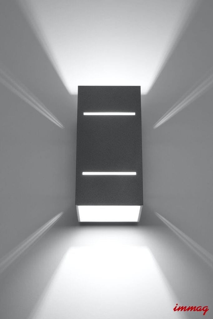 Nowoczesna lampa ścienna BLOCCO to ciekawa propozycja dla ceniących proste, efektowne oświetlenie wnętrz. Lampę wykonano w całości z aluminium, w bardzo praktycznych kolorach bieli, czerni i szarości. Wykonane w obudowie przecięcia zapewniają spektakularne rozproszenie światła, wprowadzając do wnętrza przyjemny, trochę tajemniczy nastrój.