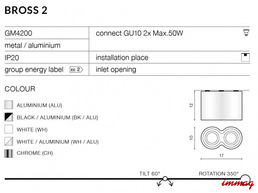 Bross 2x GU10 biały AZ0859 lampa natynkowa z regulacją