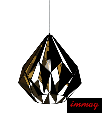 Carlton 1 to seria efektownych pod względem kształtu i sposobu świecenia lamp, austriackiej firmy Eglo. Klosz lampy to ciekawie wykonany metal w czarnym kolorze, który od środka pomalowano na kolor miedzi, dzięki czemu można uzyskać ciepłe, przyjemne światło we wnętrzu. W kolekcji Carlton 1 z miedzią dostępne są lampy wiszące, lampa ścienna, podłogowa oraz nietypowa stołowa.