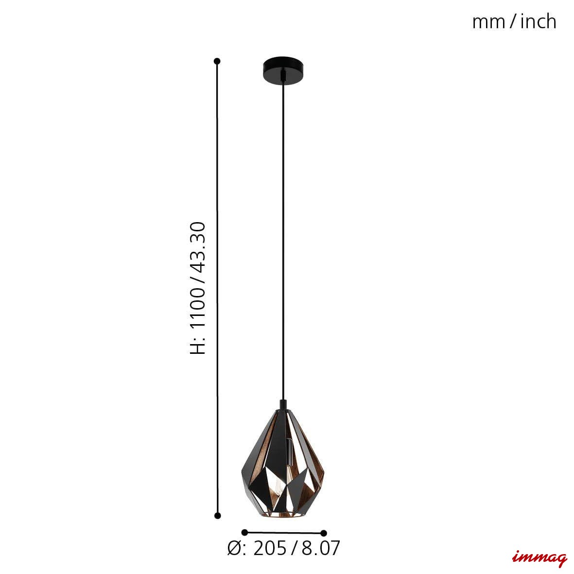 CARLTON 1 49997 lampa wisząca czarno-miedziana EGLO