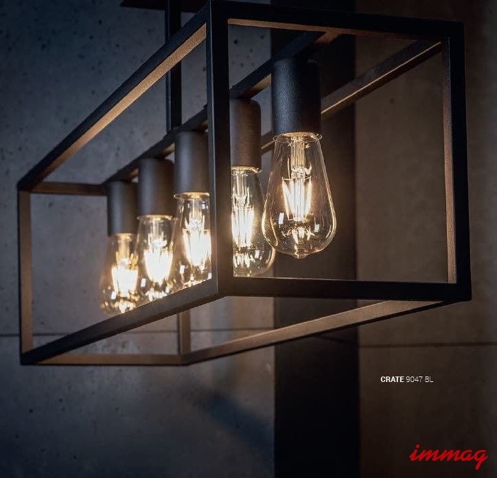 Niezwykle oryginalna i jednocześnie świetnie wykonana lampa wisząca Crate to propozycja firmy Nowodvorski. Metalowy stelaż w kształcie prostopadłościanu zamocowano na delikatnej podstawie odsuniętej od sufitu, a w jego wnętrzu umieszczono źródła światła, które jednocześnie są bardzo ważnym elementem dekoracyjnym. Ich rodzaj oraz kształt pozwoli podkreślić charakter zarówno wnętrza jak również jego użytkowników.
