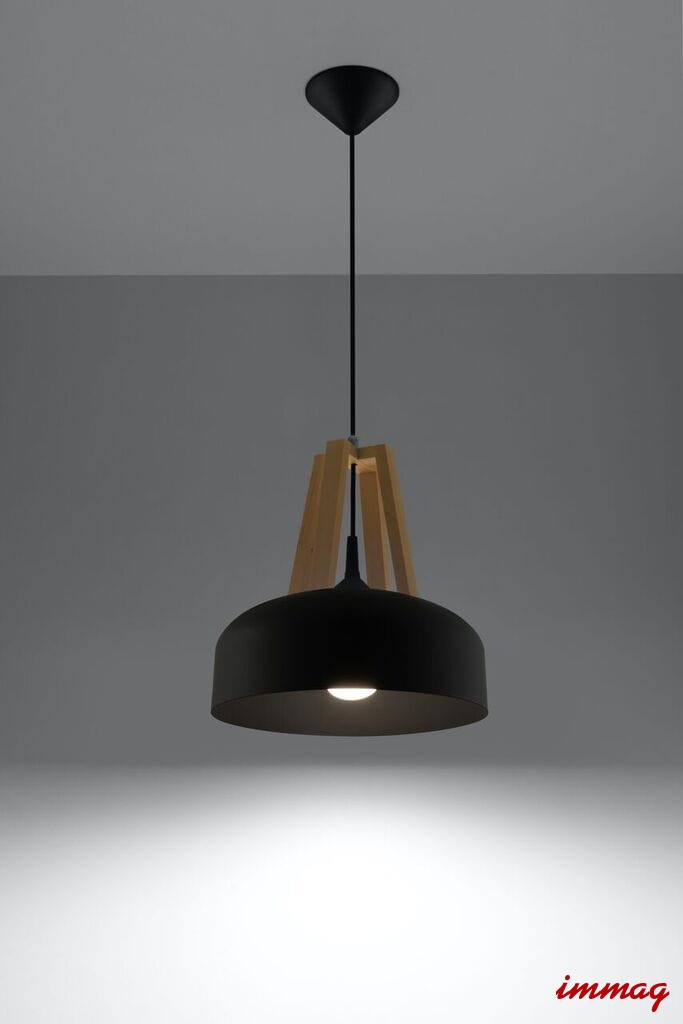 Casco SL.0390 lampa wisząca czarna/naturalne drewno Sollux lighting