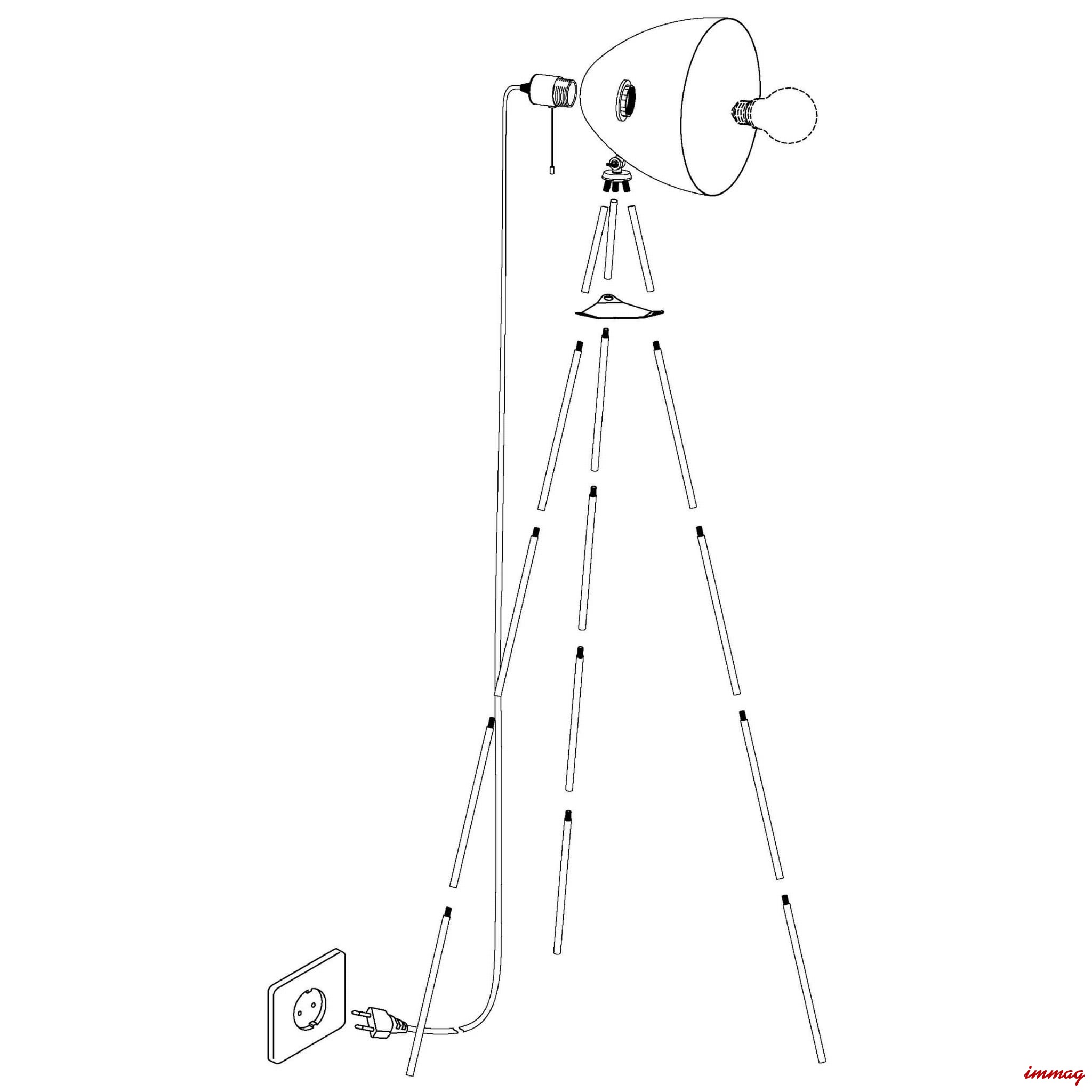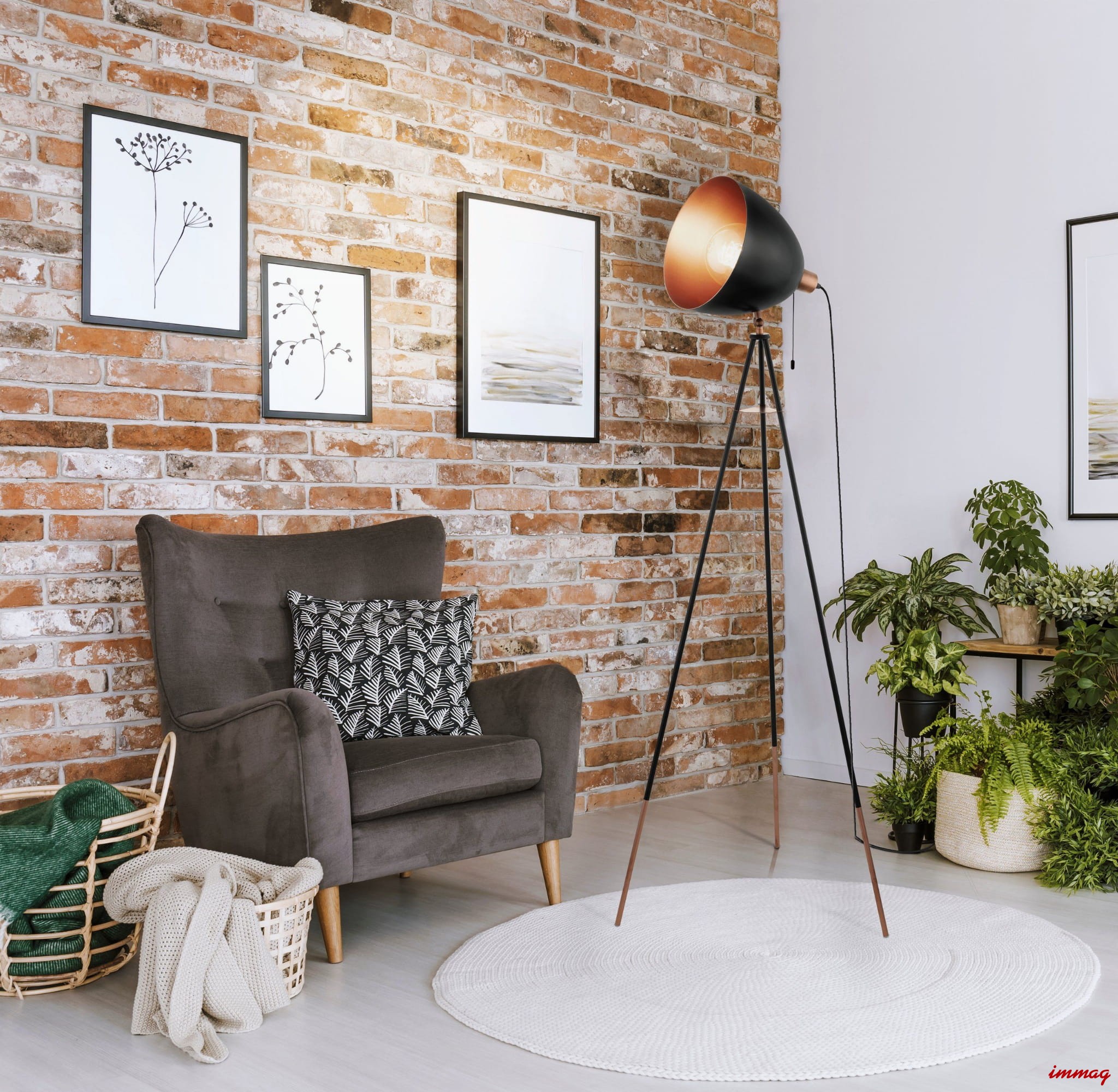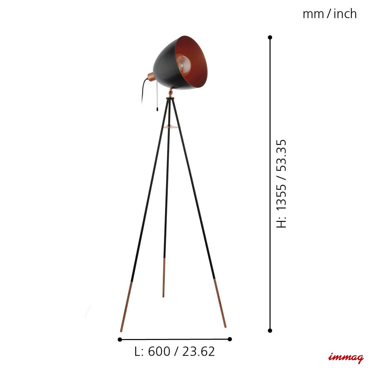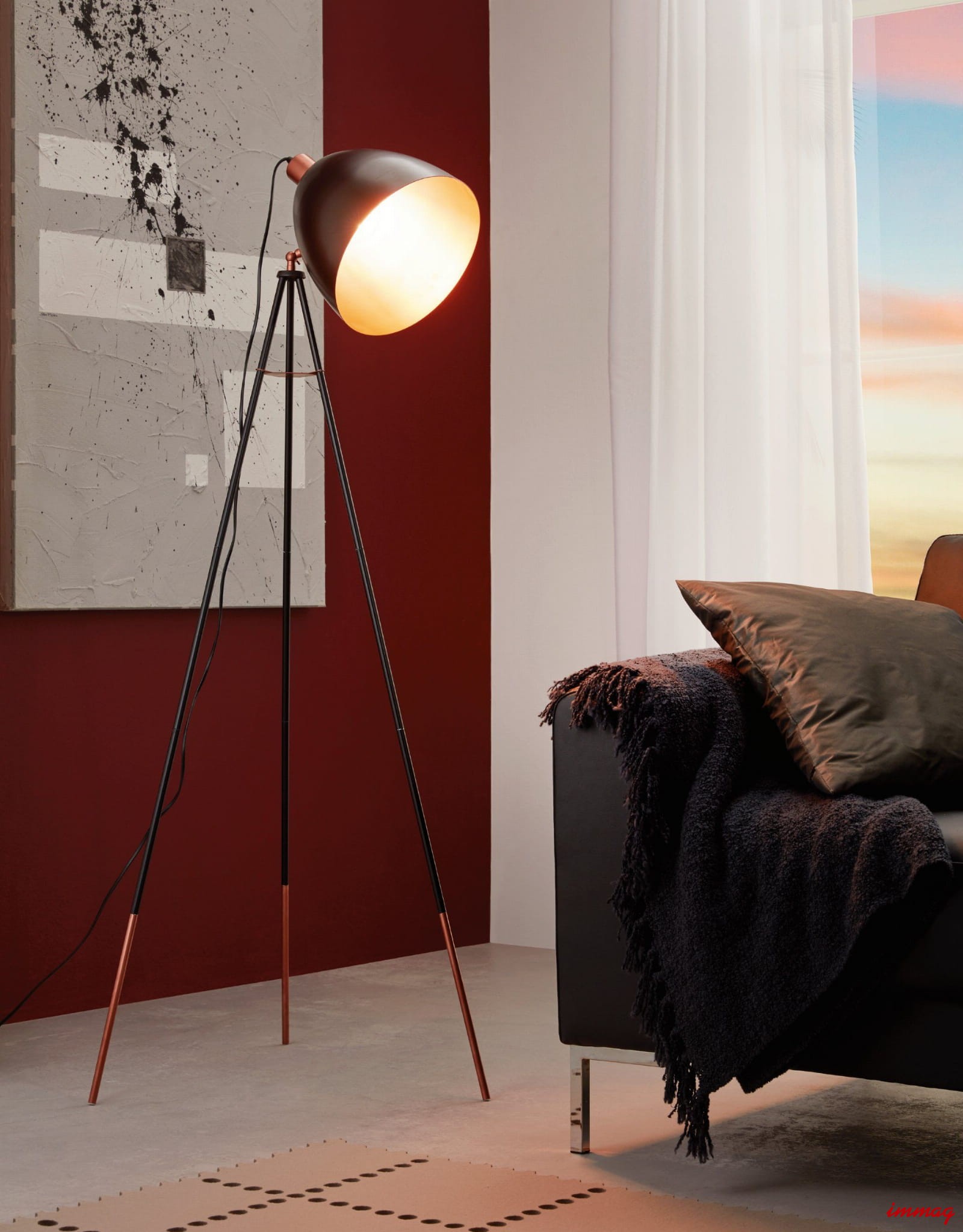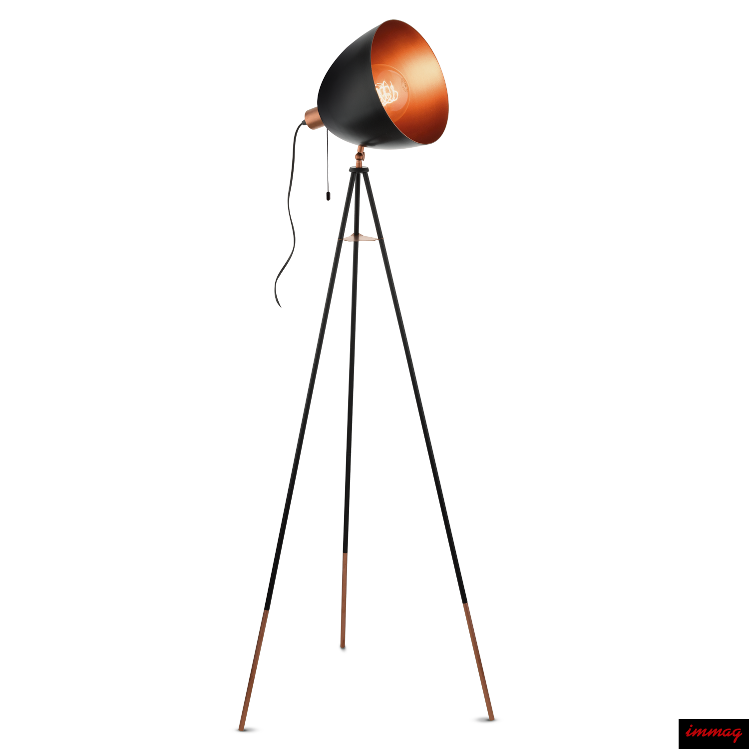 Lampa stojąca w kolorze czarnym w połączeniu z miedzianym, na 1 żarówkę E27 max. 60W.