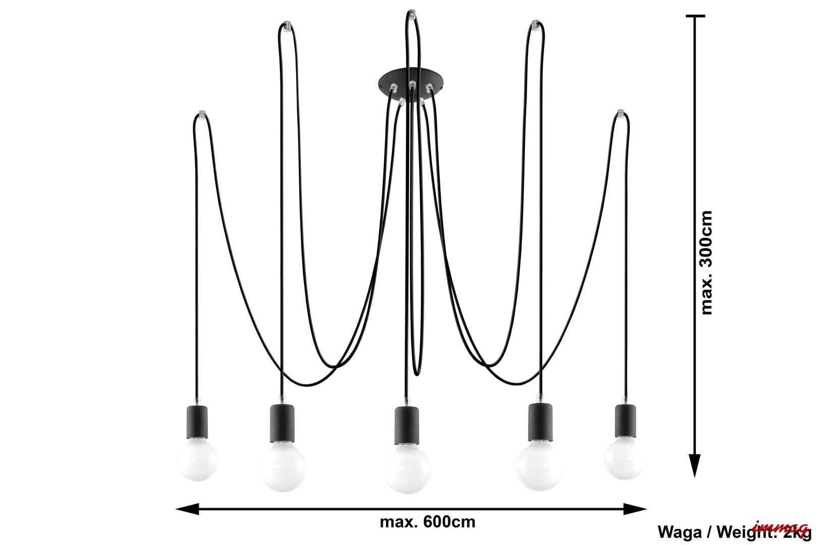 Edison 5 SL.0371 lampa wisząca podwieszana czarna Sollux lighting