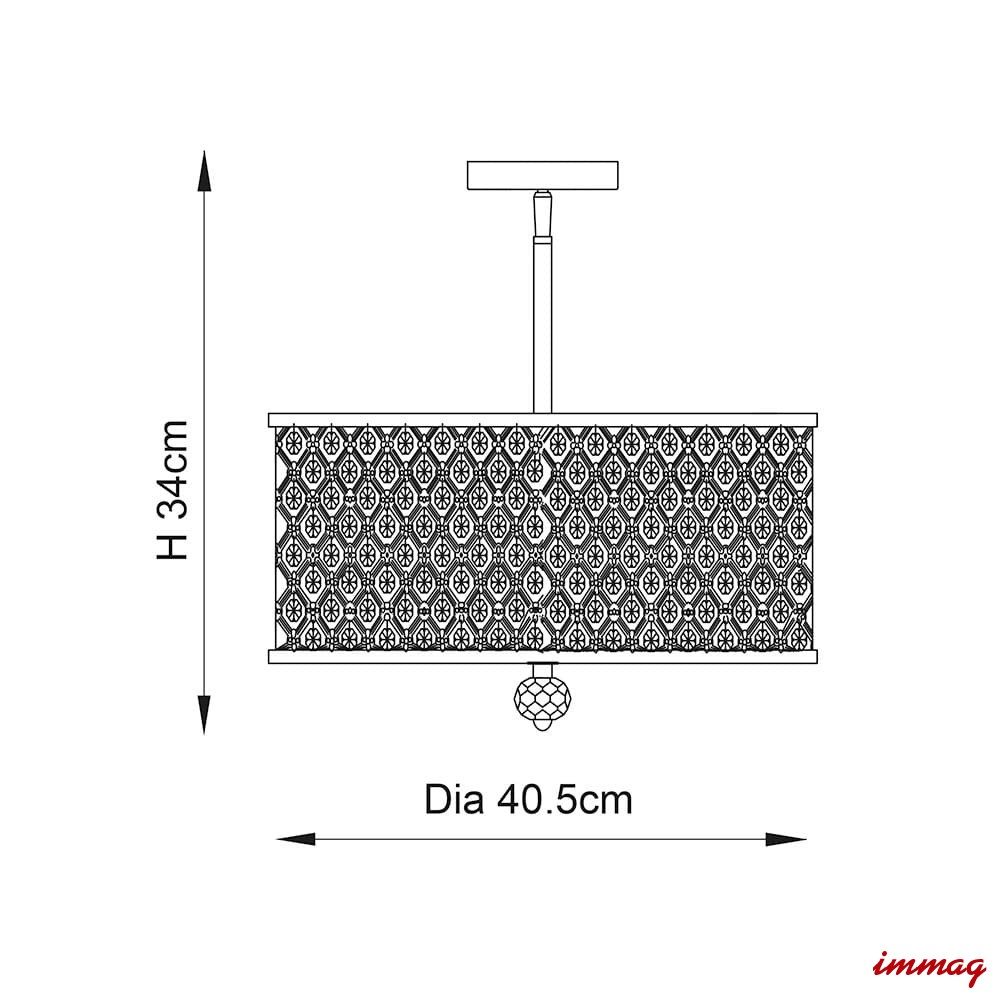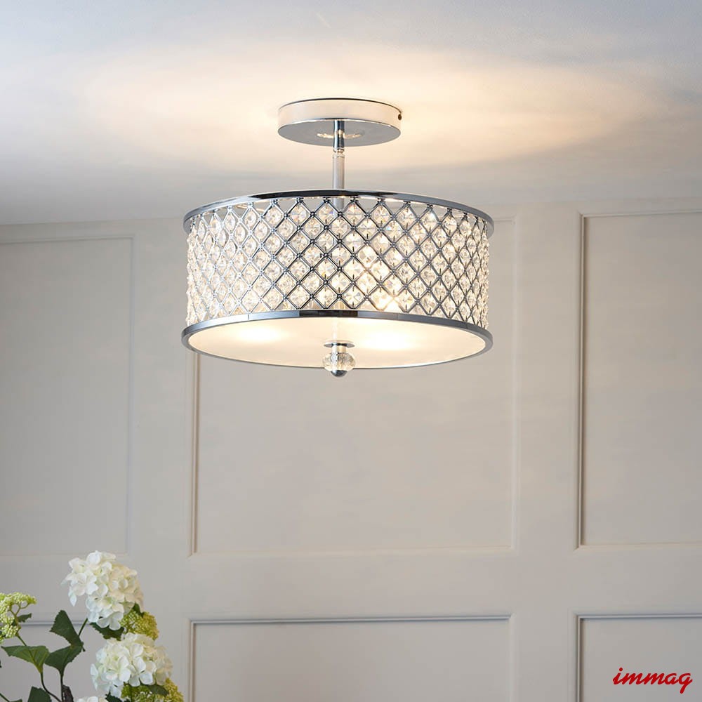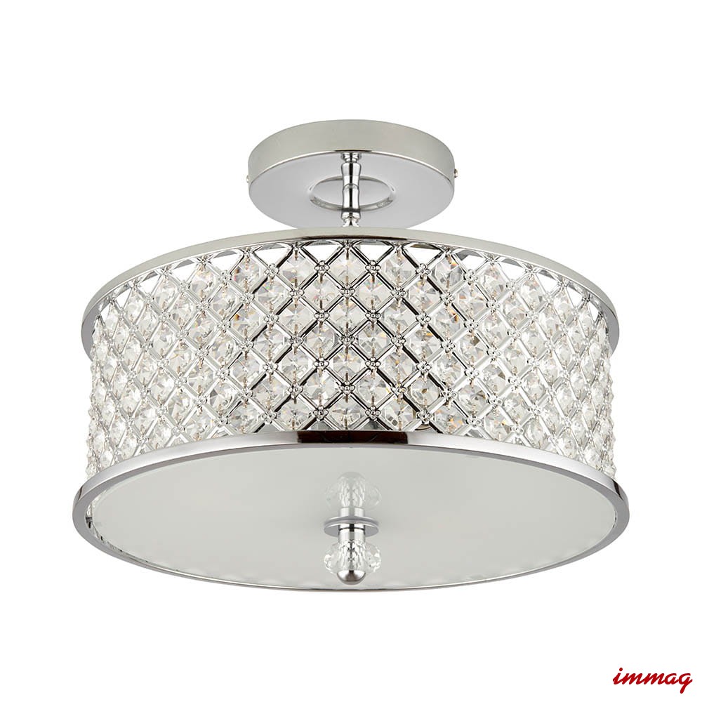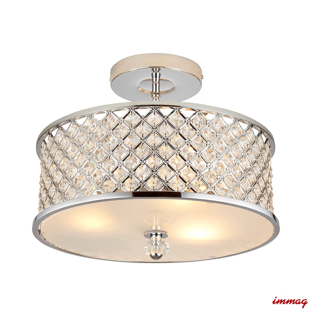 Lampa wisząca sufitowa z polerowanym chromowanym wykończeniem. Klosz wykonany jest z kryształowych koralików i opalowego dyfuzora u dołu. Lampa jest ściemnialna i nadaje się do stosowania z żarówkami LED. Dostępne są pasujące produkty.