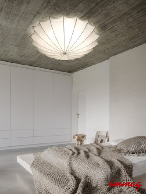 Form to seria delikatnych lamp sufitowych o ciekawym, oryginalnym kształcie. Podstawę lampy stanowi odpowiednio uformowany stelaż, na który nałożono tkaninę z lycry. Dzięki temu materiał podkreśla idealnie kształt, tworząc we wnętrzu interesującą formę i jednocześnie rozświetla pomieszczenie przyjemnym, rozproszonym światłem. Plafony Form wzbogacono dodatkowo lampą na szafkę nocną.