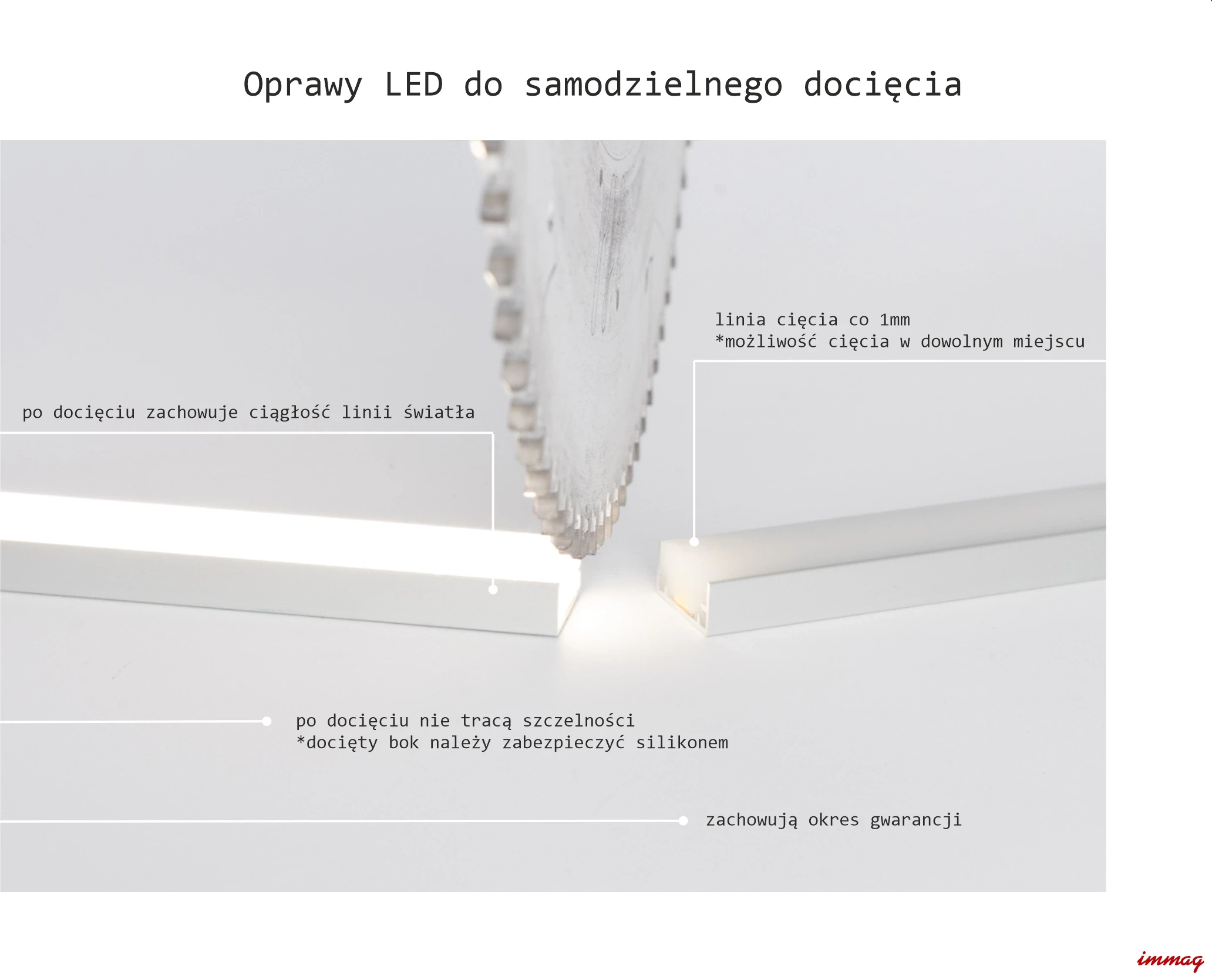 Oprawę AQU zoomLED® można docinać co 1mm bez utraty szczelności, bez utraty gwarancji, oraz przy zachowaniu ciągłości linii światła. Oprawy AQU można ze sobą łączyć tworząc idealne, estetyczne linie światła.