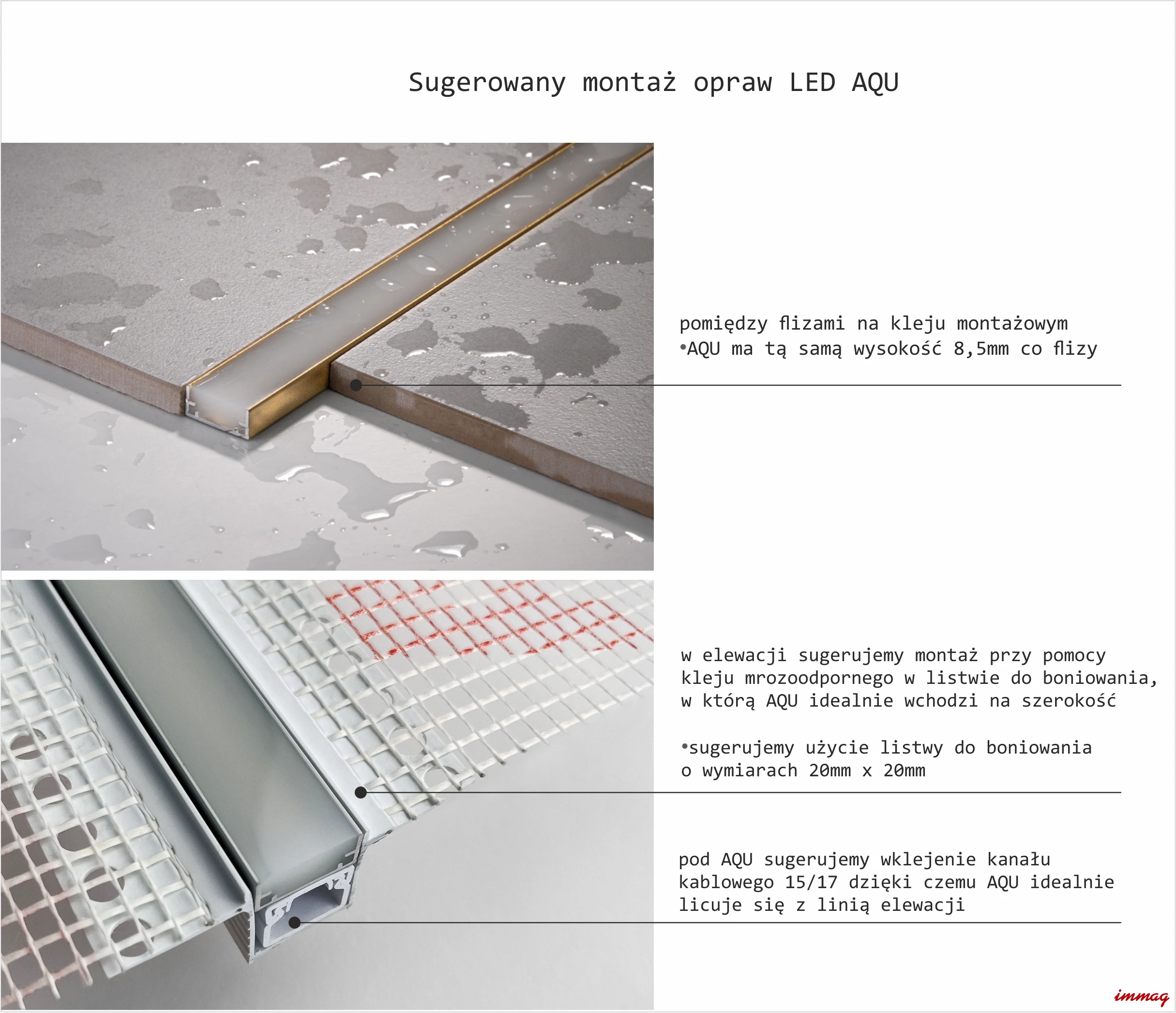 *pod AQU sugerujemy wklejenie kanału kablowego 15/17 dzięki czemu AQU idealnie licuje się z linią elewacji