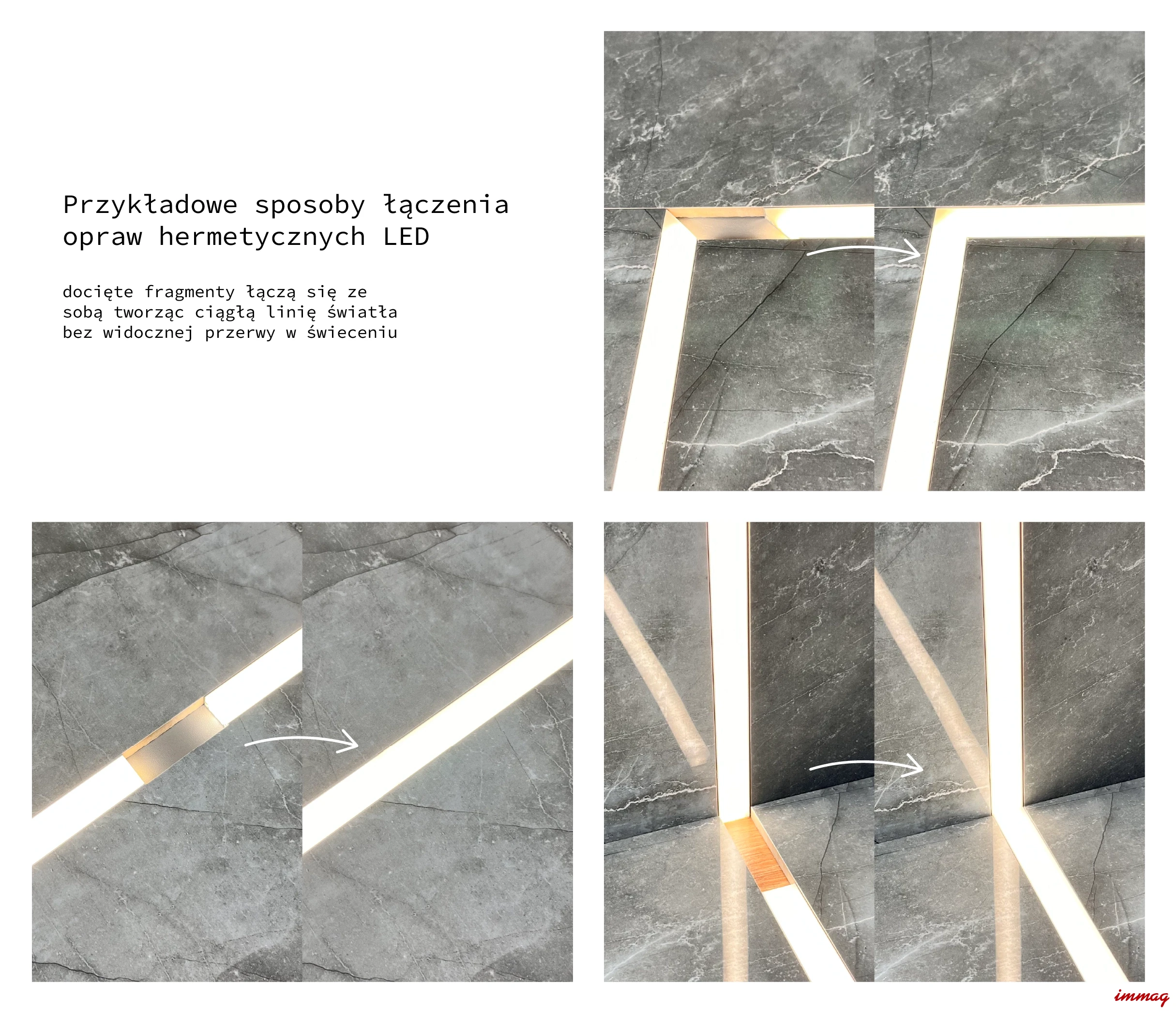 Oprawę AQU zoomLED® można docinać co 1mm bez utraty szczelności, bez utraty gwarancji, oraz przy zachowaniu ciągłości linii światła. Oprawy AQU można ze sobą łączyć tworząc idealne, estetyczne linie światła.