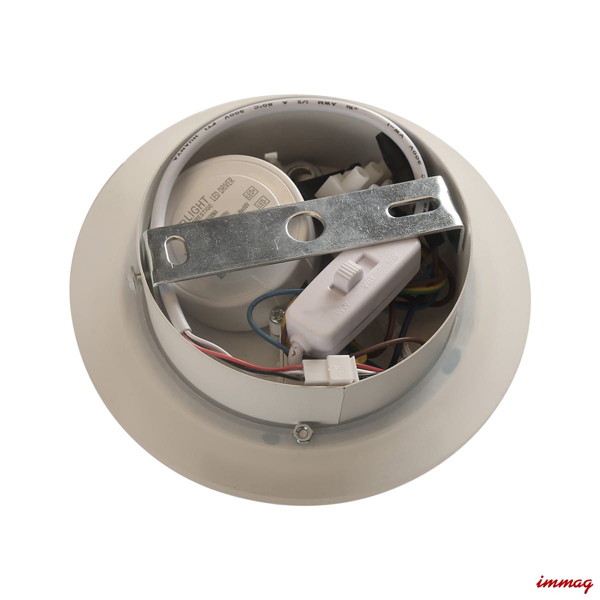 Materiały: Spot Parma 1 wykonany jest z metalu w białym kolorze, posiada dwa rodzaje obręczy wewnętrznych, białe i złote.