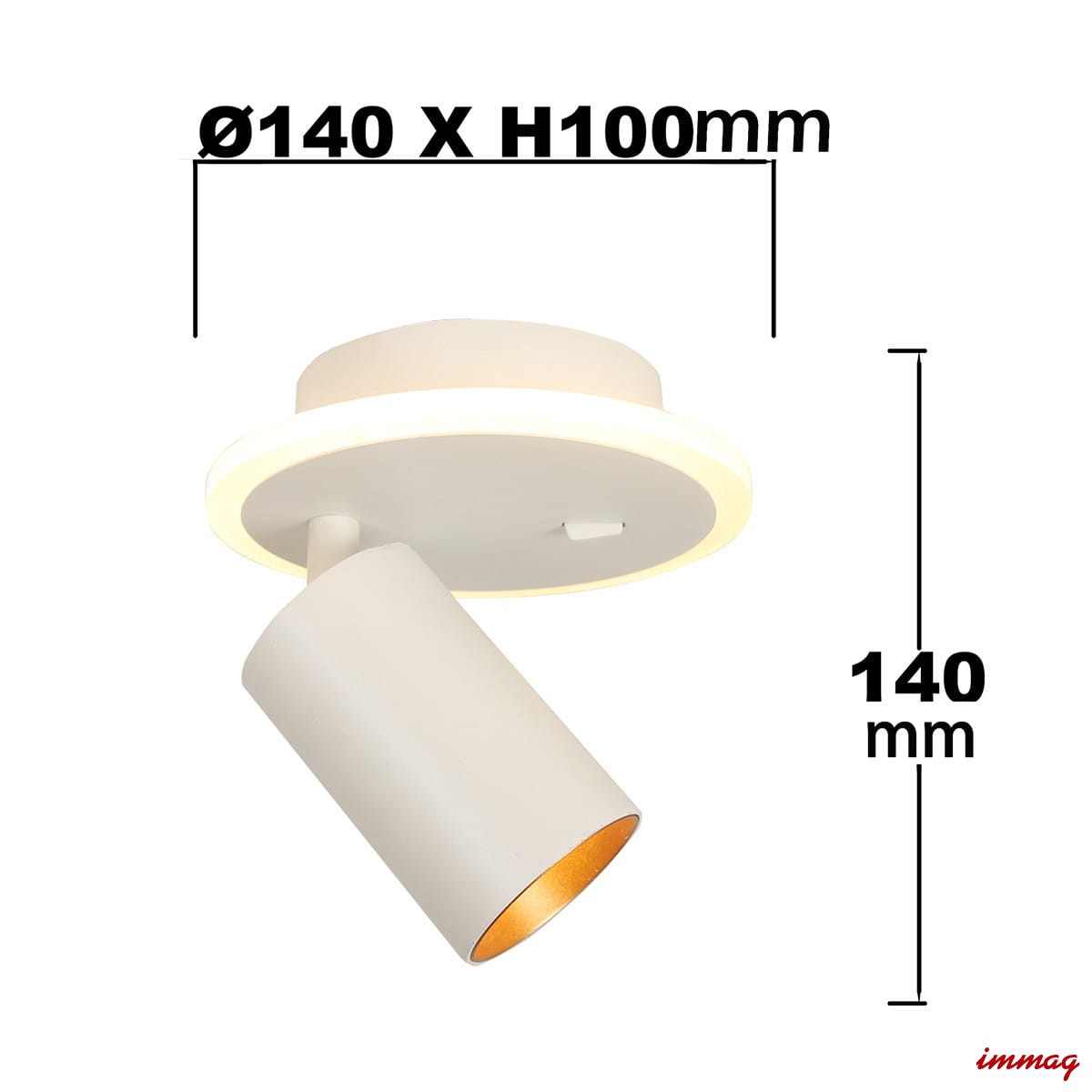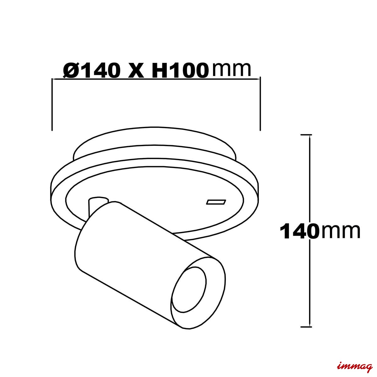 Wymiary: Średnica i wysokość spotu wynoszą 14 cm (patrz rysunek techniczny).