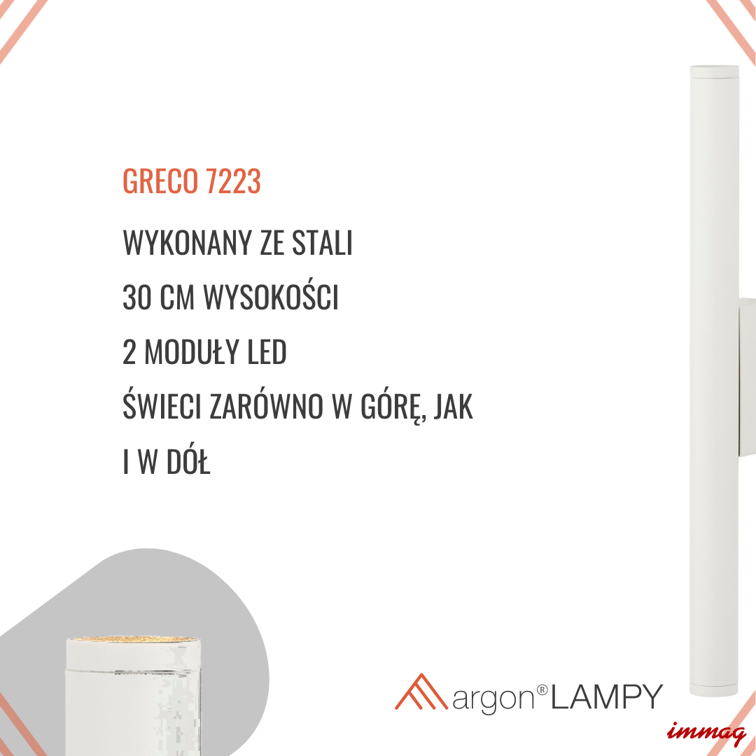 Kinkiet biały led 3000K lampa ścienna podłużna GRECO 7223
