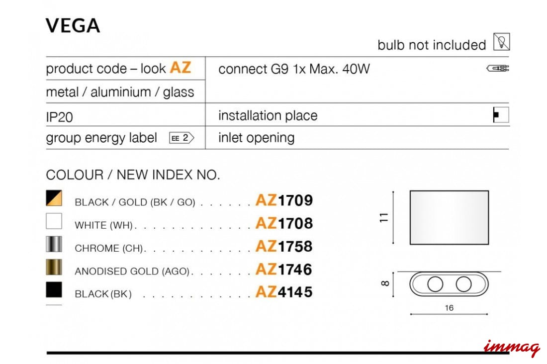 Prosty kształt i pośrednie światło to cechy tej niezwykle efektownej lampy ściennej VEGA. Obudowa lampy wykonana została z metalu, w różnych kolorach, dzięki czemu można dopasować ją do kolorystyki wnętrza. Kinkiet świecąc w górę i w dół po ścianie daje przyjemne, nieoślepiające światło.