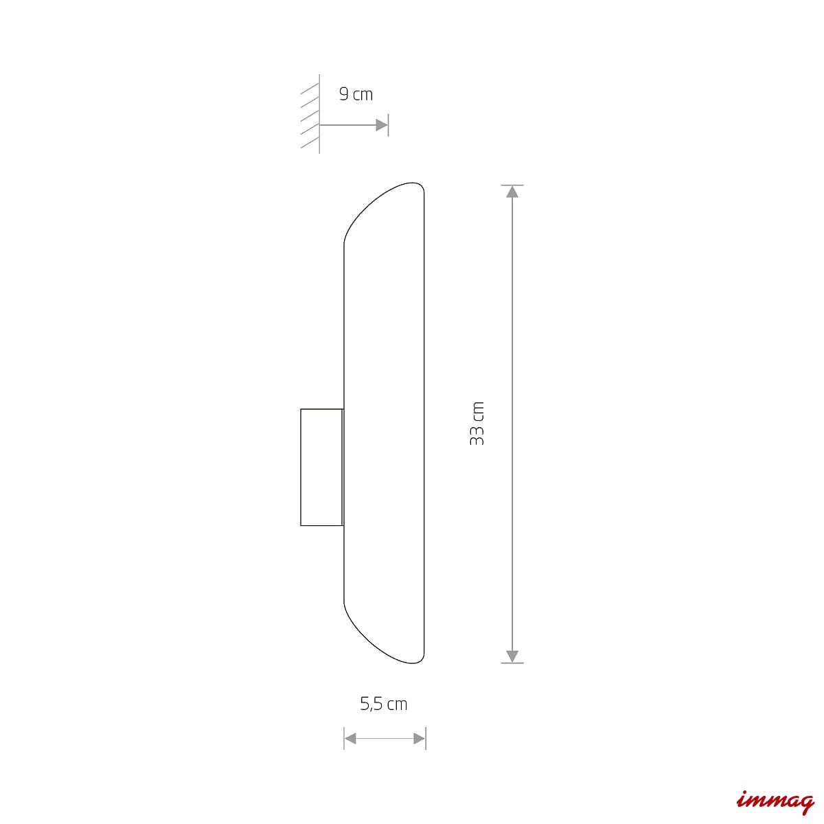 Wymiary : wysokość 33 cm , szerokość 5,5 cm , odstawalność od ściany 9 cm