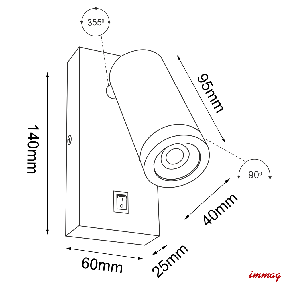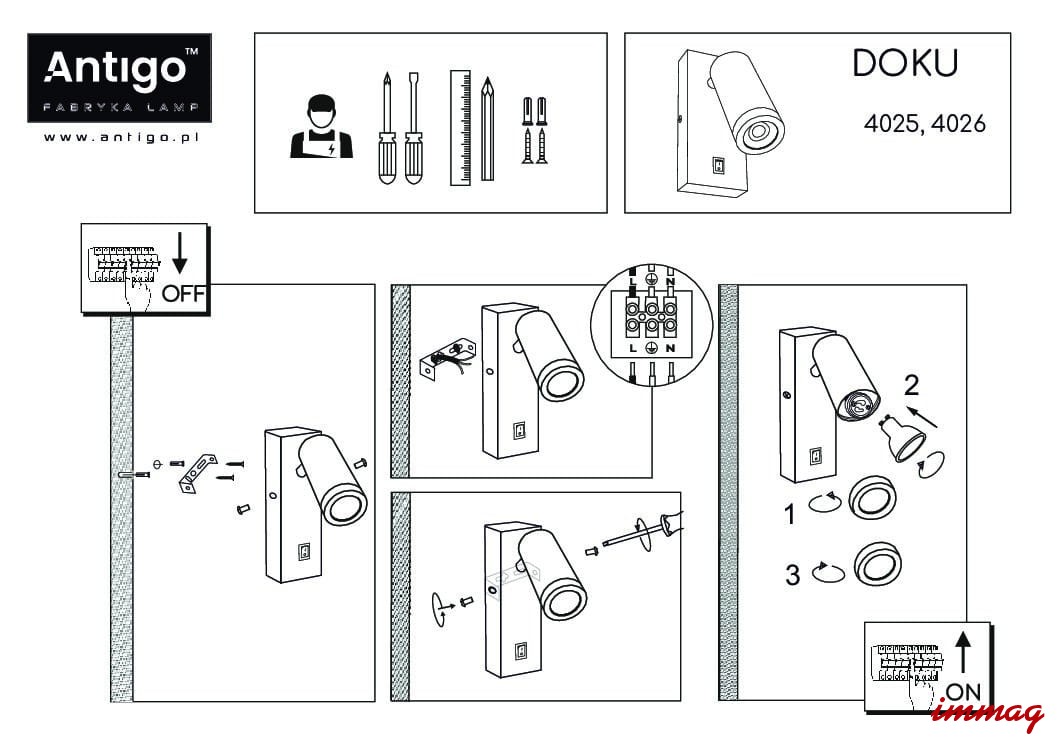 Kinkiet z wyłącznikiem do sypialni biały DOKU 4026