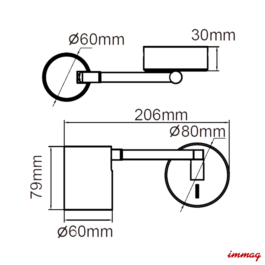 Wymiary :podstawa średnica 80 mm , odstaje od ściany 206 mm , średnica reflektora 60 mm