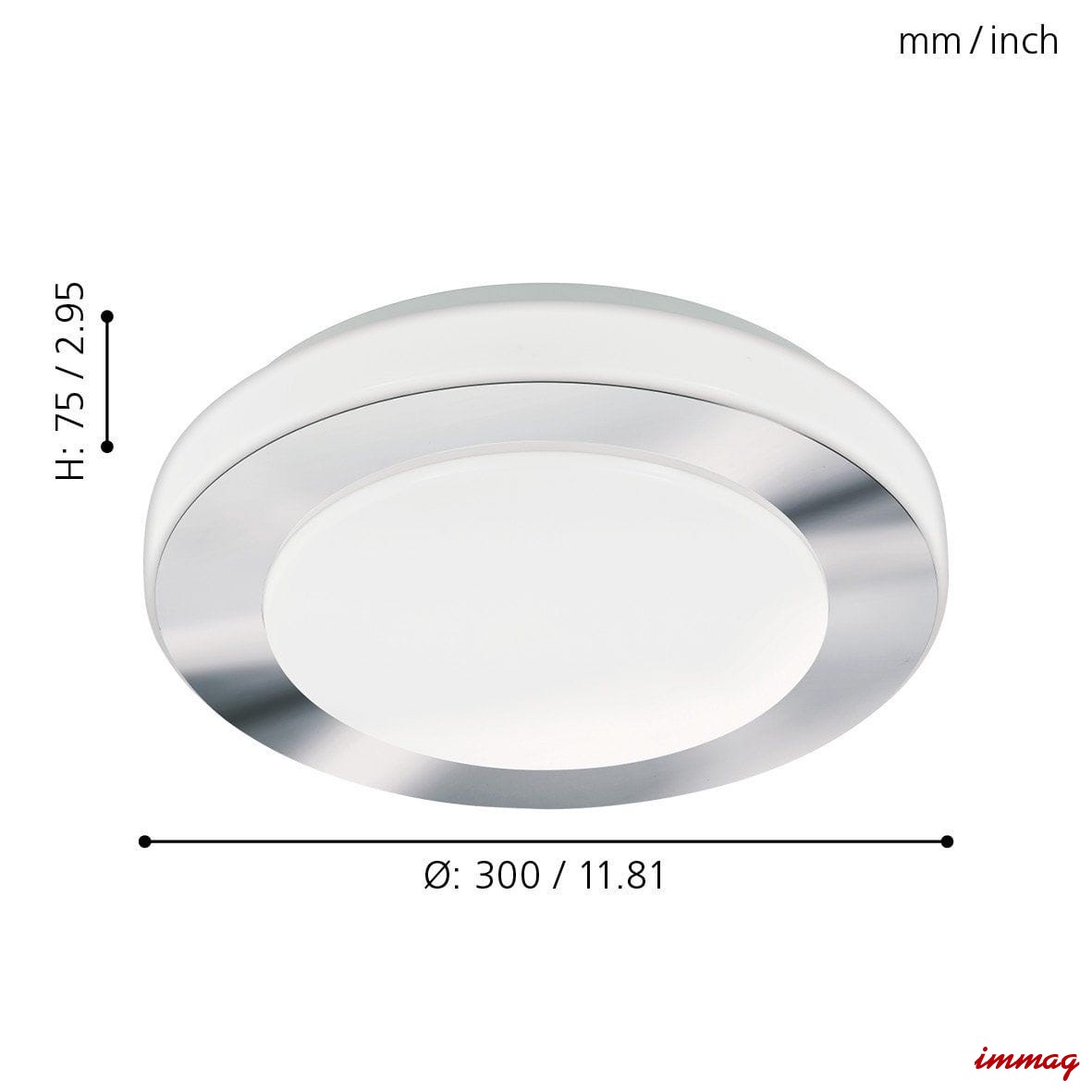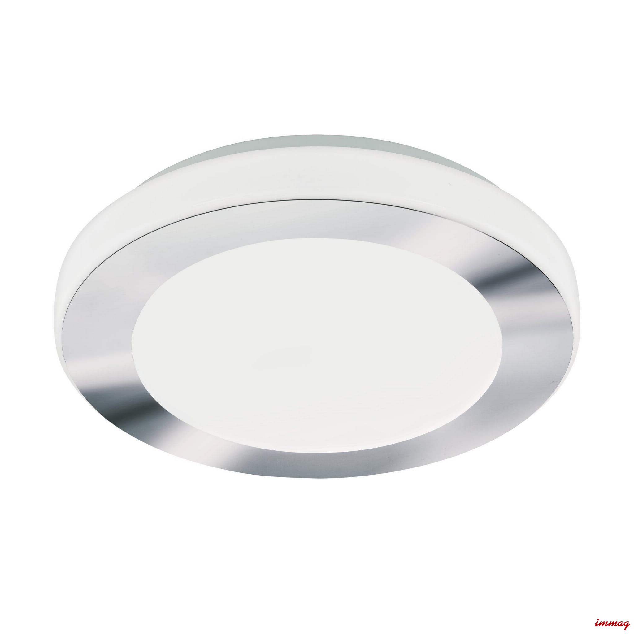 Prosta, subtelna lampa mocowana bezpośrednio do sufitu, której źródłem światła jest energooszczędny moduł led. Podstawa lampy wykonana została ze stali, do której dopasowano mleczny klosz z tworzywa, z dekoracyjnym elementem w chromowym kolorze. Dzięki podwyższonej szczelności IP44 lampa może być stosowana w wilgotnych pomieszczeniach.