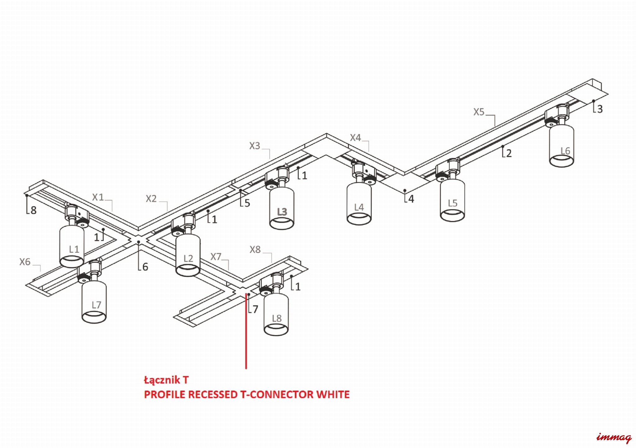 Łącznik T do szyny wpuszczanej biały PROFILE RECESSED T-CONNECTOR WHITE 8834