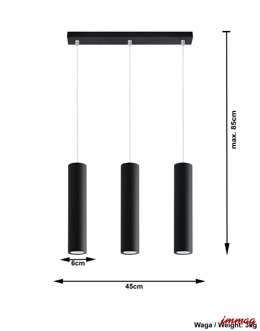 LAGOS to techniczna seria lamp wiszących uzupełnionych efektownie świecącą lampą ścienną. Głównym elementem lampy są długie tuby wykonane ze stali, we wnętrzu których umieszczono źródło światła. Lampy idealnie nadają się do oświetlenia wybranej powierzchni, dzięki skoncentrowanemu w dół światłu, które jednocześnie nie powoduje efektu oślepienia. LAGOS produkowane są w dwóch bardzo praktycznych kolorach : czarny i biały, a zastosowane oprawki GU10 ułatwiają dobór ledowych źródeł światła o różnych mocach i barwach.