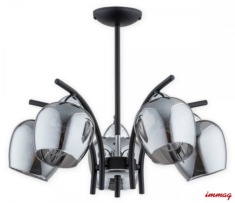 Lampa Maral żyrandol 5-punktowy - czarny matowy + chrom - grafitowy półprzezroczysty O3075 W5 CZA + CH Lemir