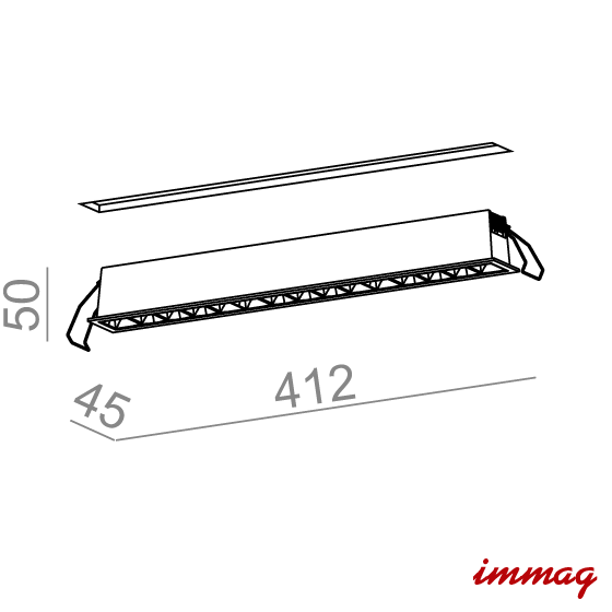Wymiary: długość 412 mm szerokość 45 mm wysokość 50 mm .