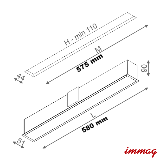Wymiary montażowe (dł./szer./gł.): 575x44x110 mm