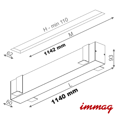 Wymiary montażowe (dł./szer./gł.): 1142x62x110 mm