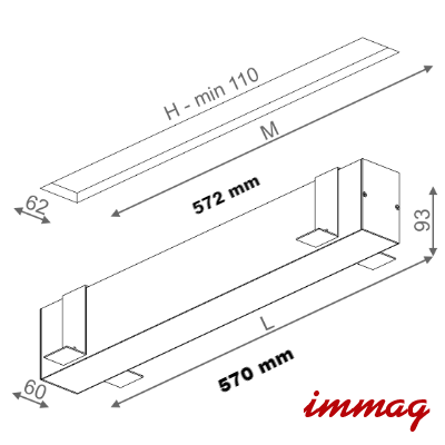 Wymiary montażowe (dł./szer./gł.): 572x62x110 mm