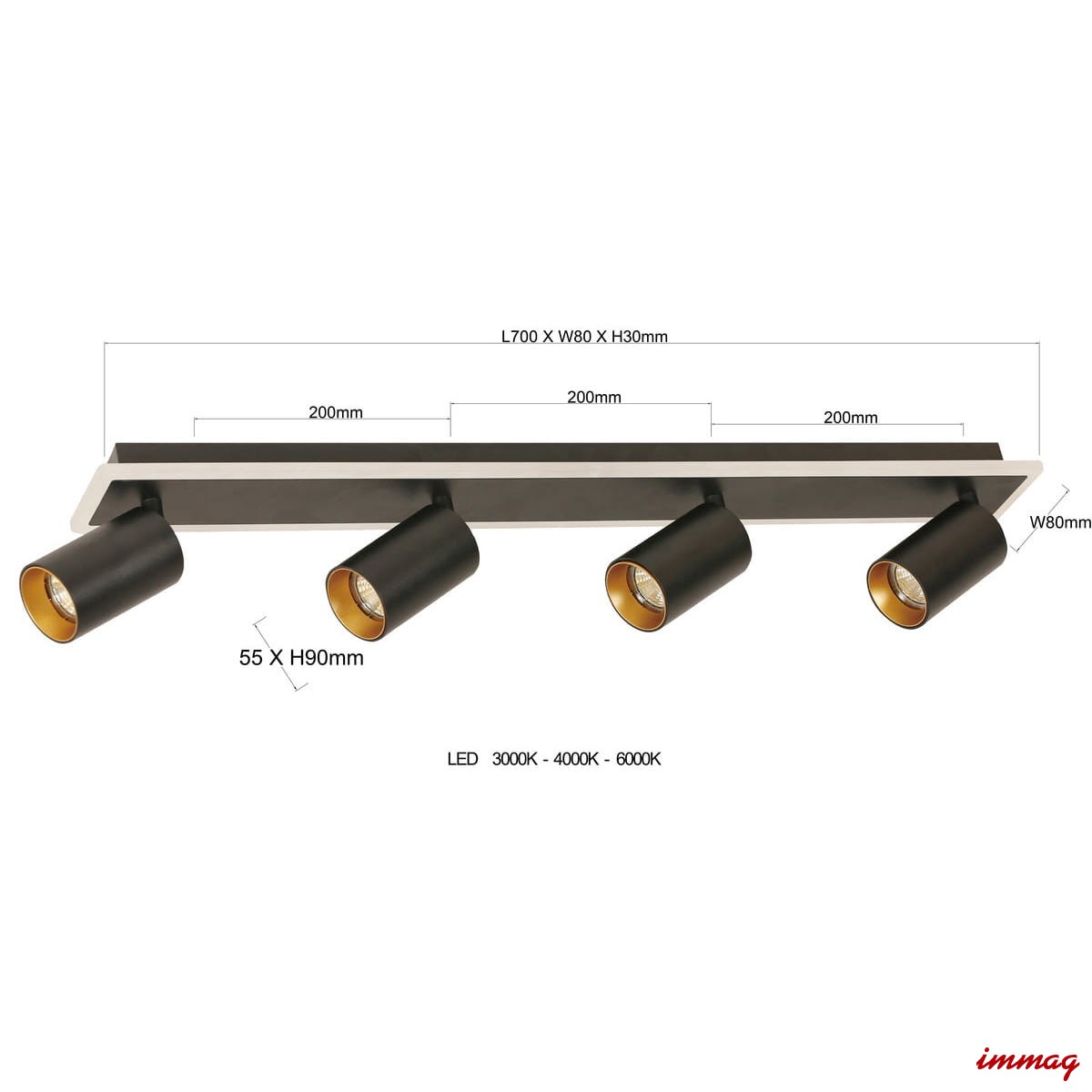 Lampa listwa Spot Parma 4 4xGU10 + 1xLED CCT czarna LP-0612/4C BK