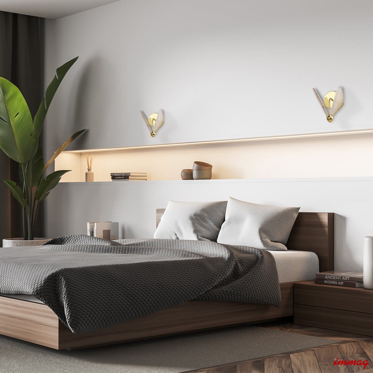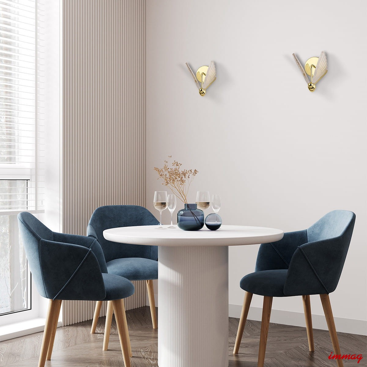 Kinkiet "Mariposa" wyposażony jest w zintegrowane oświetlenie LED, które oferuje możliwość ustawienia barwy światła na 3000K, 4000K lub 6000K, dostosowując je do preferencji użytkownika. Dwa źródła światła zapewniają optymalne oświetlenie. Główny kolor kinkietu to złoty, co dodaje wnętrzom wyjątkowego charakteru. Skrzydła motyla, będące jednocześnie źródłem światła, tworzą niezwykły efekt, który przyciąga wzrok i sprawia, że kinkiet "Mariposa" jest nie tylko oświetleniem, ale przede wszystkim dziełem sztuki.