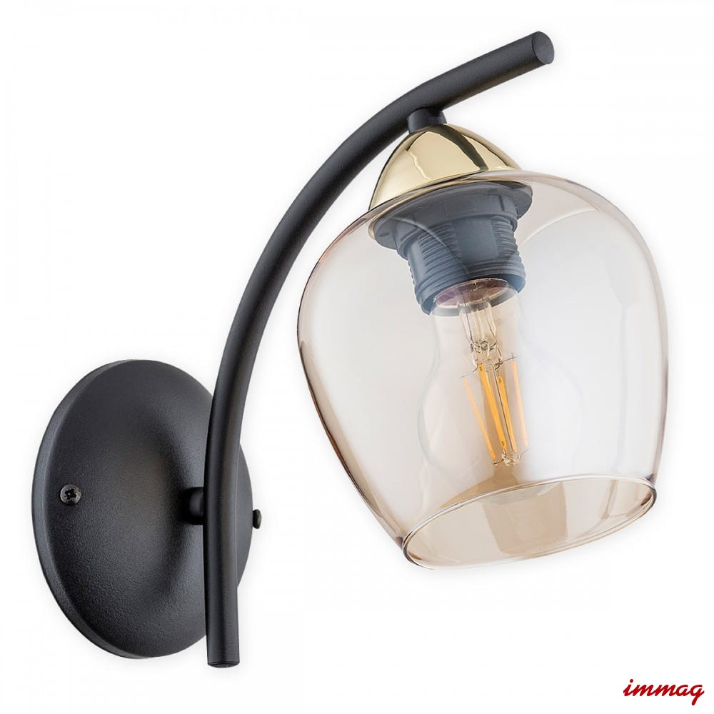 Lampa na ścianę Maral kinkiet 1-punktowy - czarny matowy + złoty - bursztynowy półprzezroczysty O3070 K1 CZA + ZL Lemir