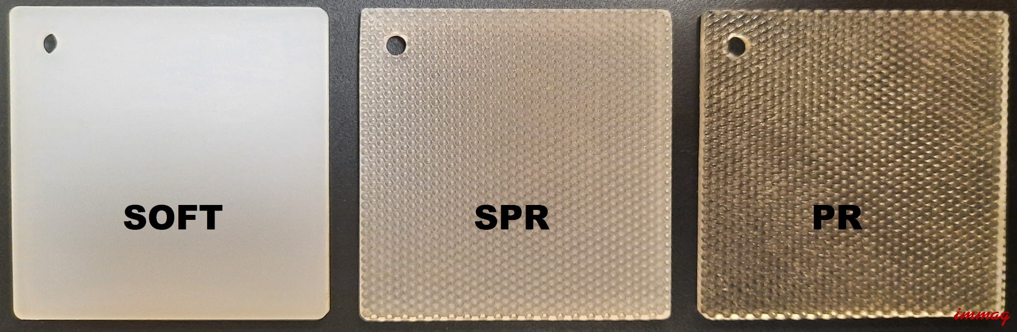 Przesłona PR : przesłona pryzmatyczna , pochłaniająca około 8 % światła , rozpraszająca je pod kątem 60 stopni. Umożliwia ona skupienie całej mocy światła na jednym miejscu np. na blacie roboczym. Dedykowana do biur i pracowni . Przesłona ogranicza olśnienie , jest przeźroczysta , widać punkty LED w postaci delikatnych okręgów układających się w sprężynę.