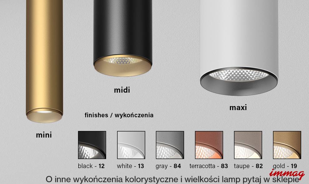 Rodzina lamp Pet next mini posiada w swoim gronie lampę wiszącą , lampę nasufitową , reflektorek natynkowy i reflektor do szynoprzewodu. Długości reflektora to 12 , 20 i 30 cm. Dodatkowym atutem jest zintegrowane ledowe źródło światła dostępne w barwach: 2700K-ciepły biały, 3000K-ciepły biały bez żółtego efektu oraz 4000K neutralny. Możemy też dobrać kąt świecenia lampy w opcji jest 20° i 41° należy wybrać prz zamówieniu lamp.