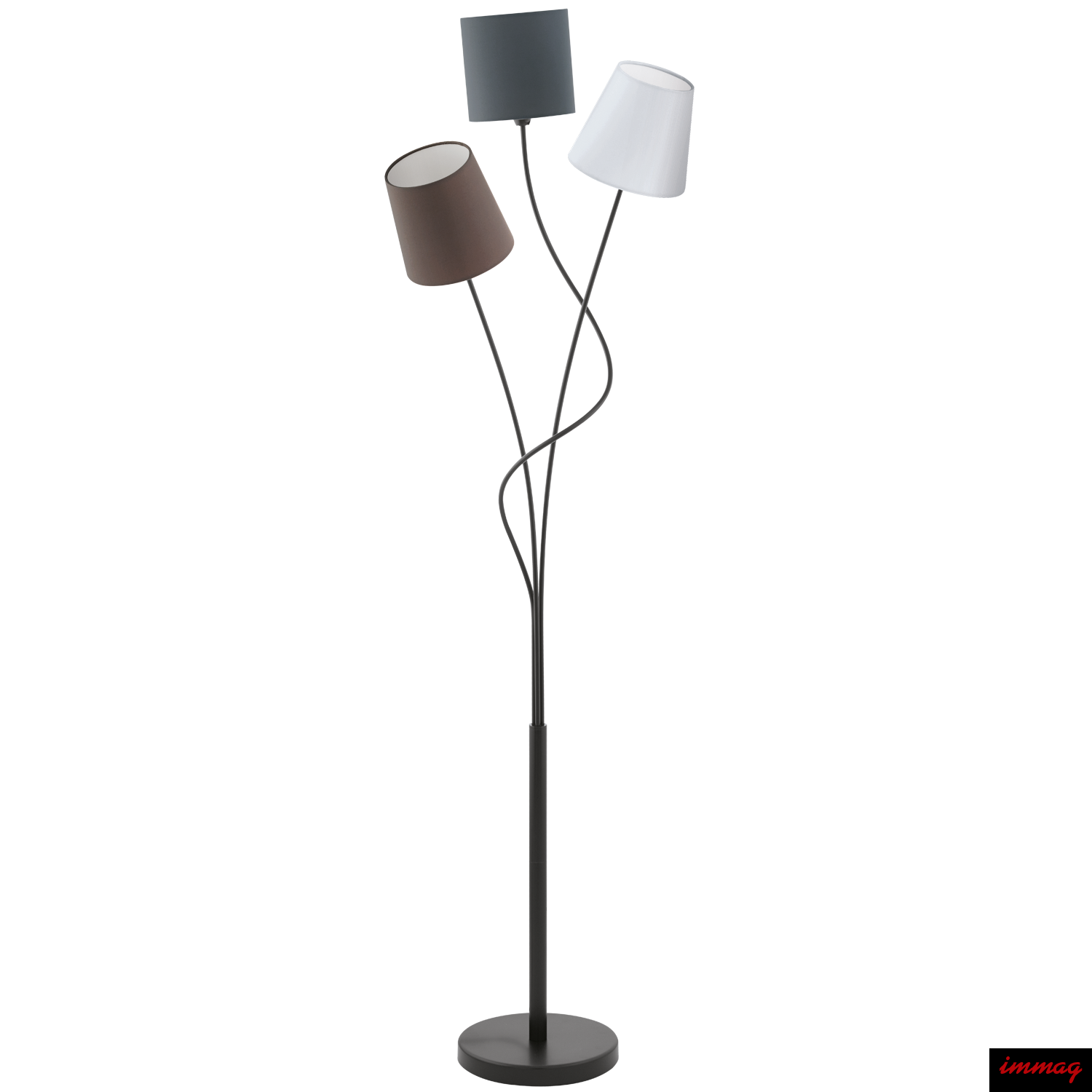Abażurki z materiału w kolorach: antracyt, biały i brązowy.