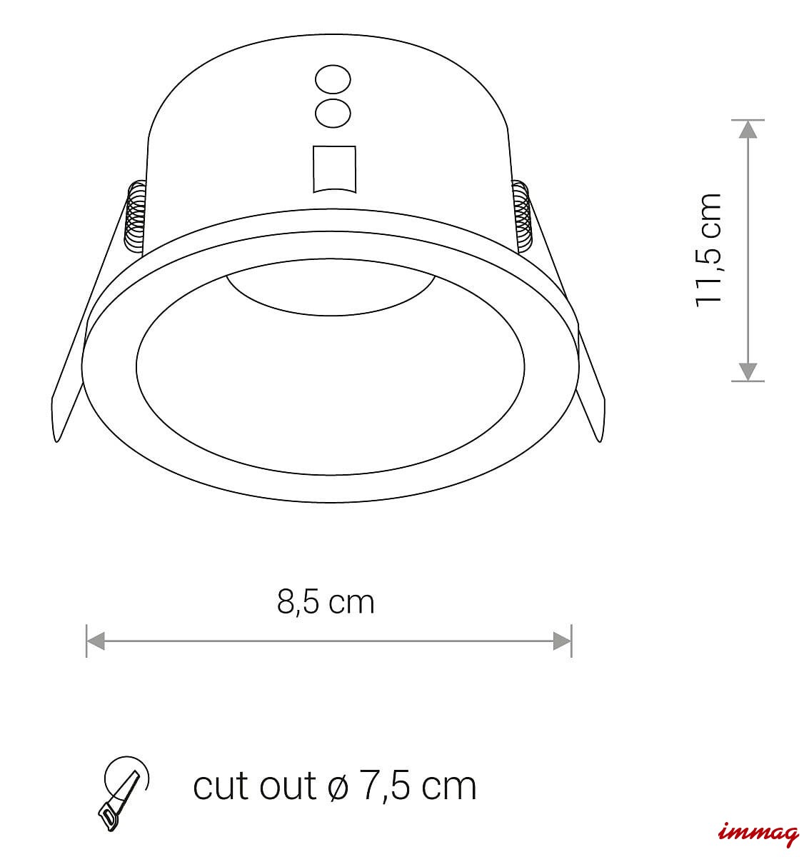 Montaż: podtynkowy otwór montażowy 7,5 cm